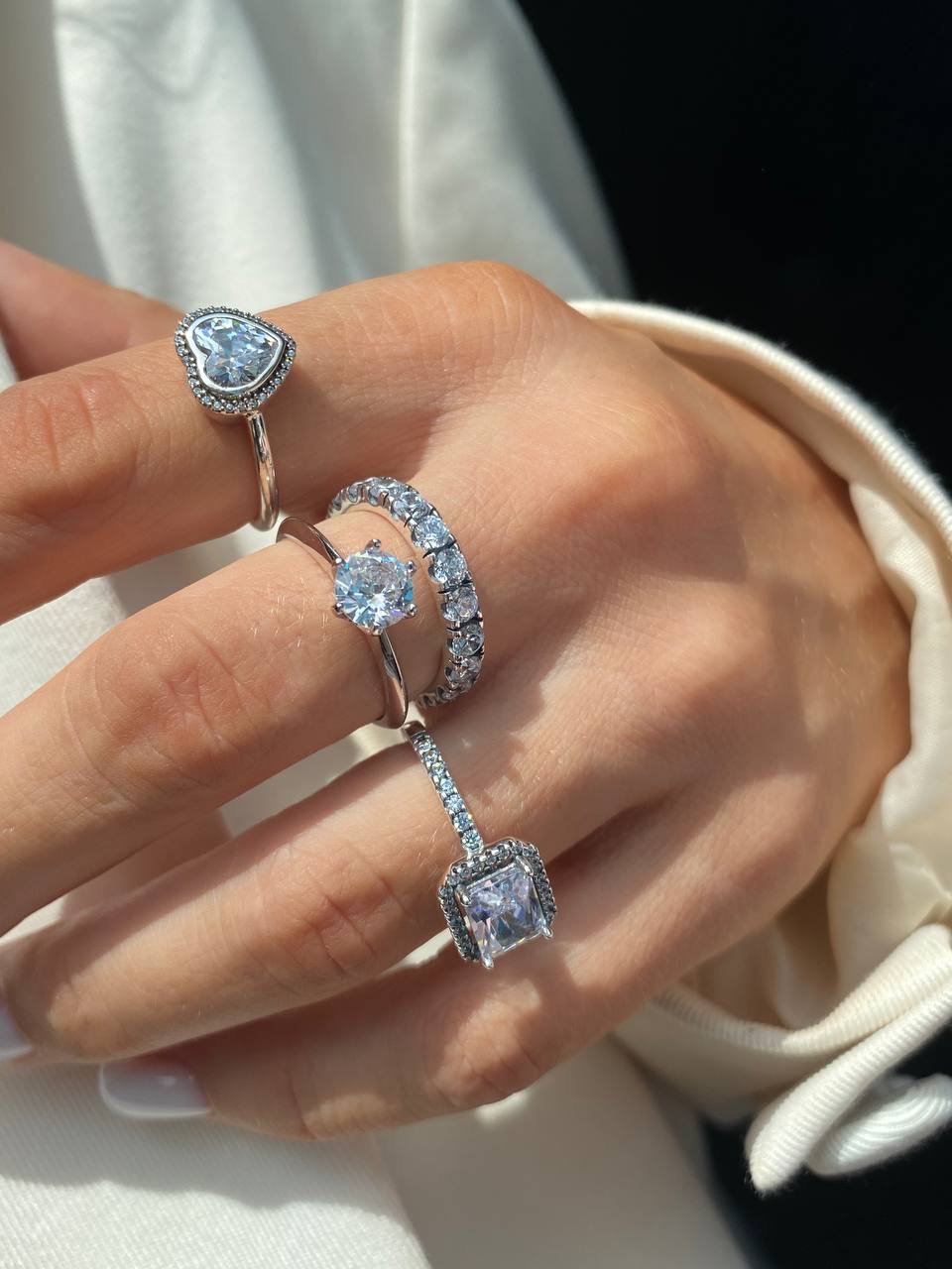 Anel De Prata Grande Elos Brilhantes De Zircônias