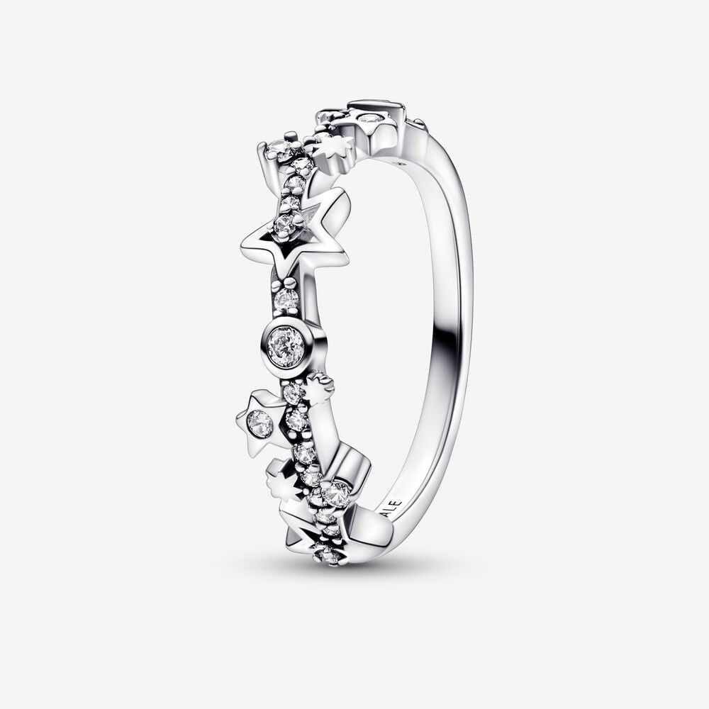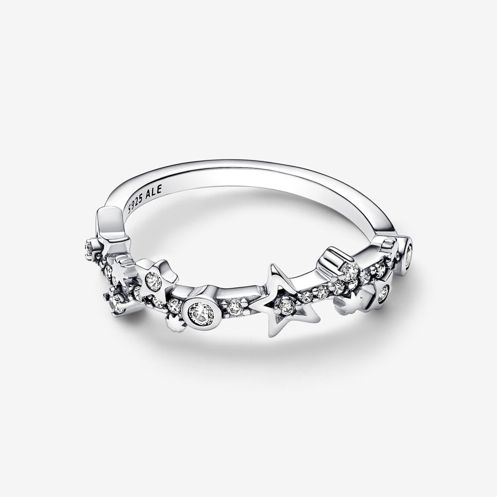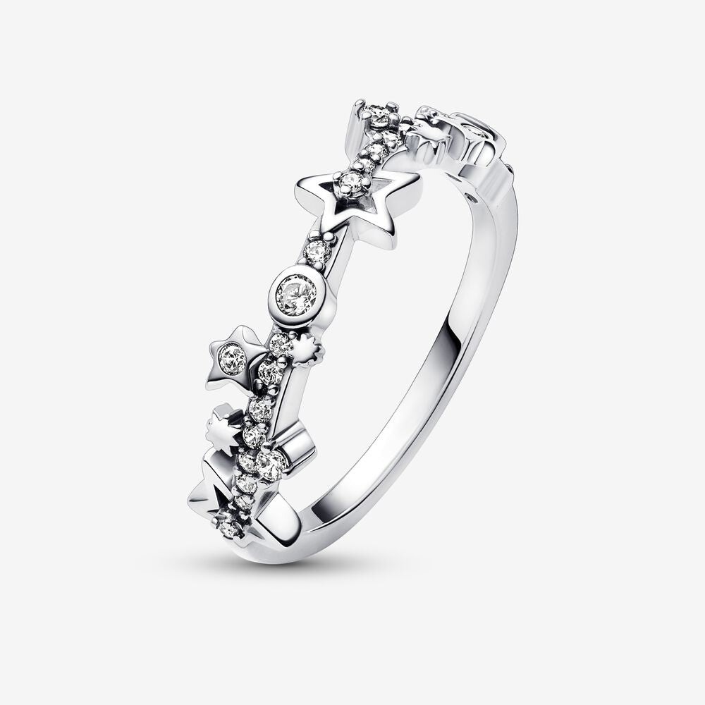 Traga as estrelas ao seu estilo com o Anel da Via Láctea Estrelada, criado em prata esterlina e definido com zircônia cúbica clara. A mítica Via Láctea inspira nossa imaginação desde os tempos antigos, abrangendo o céu noturno com seu rio brilhante de estrelas. Nosso novo design de anel captura a qualidade onírica da Via Láctea com uma fileira de pavê na metade superior da faixa do anel, espalhada por estrelas assimétricas de tamanhos variados, incluindo duas estrelas cadentes com trilhas de estrelas pavê. Pedras cintilantes e pequenas estrelas polidas de oito pontas adicionam um efeito de poeira estelar cintilante. Use-o sozinho ou combine-o com a Pulseira da Via Láctea Estrelada para um look que canaliza a beleza cósmica da nossa galáxia.