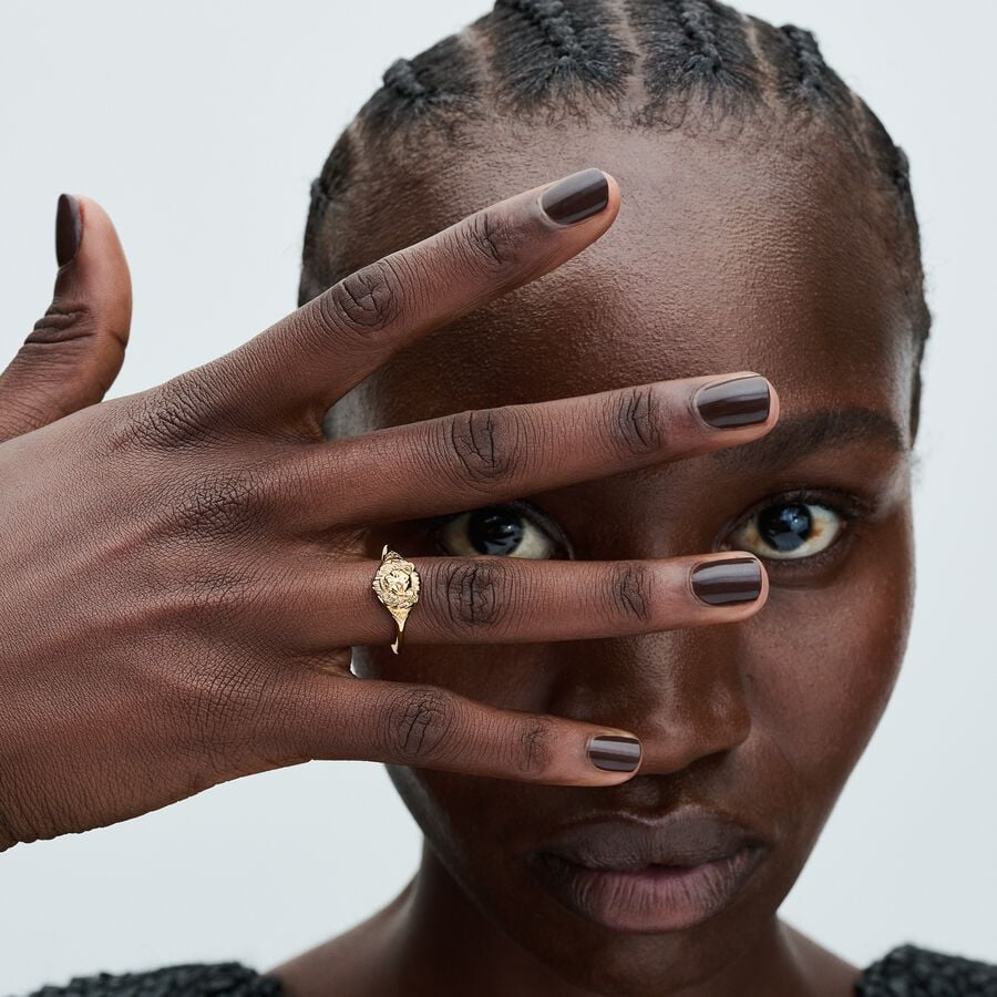 Mostre seu lado ousado com o Anel de Leão Lannister de Game of Thrones. Perfeito para os fãs da casa Lannister, este anel banhado a ouro 14k apresenta a gravura "HEAR ME ROAR" juntamente com um motivo de cabeça de leão. Inspirado no anel de Tyrion Lannister, ele representa o sigil instantaneamente reconhecível da família. Use-o como um símbolo de orgulho para sua família ou presenteie-o ao fã de Game of Thrones em sua vida.