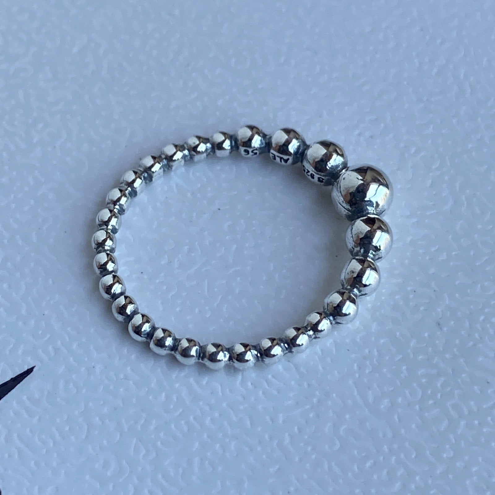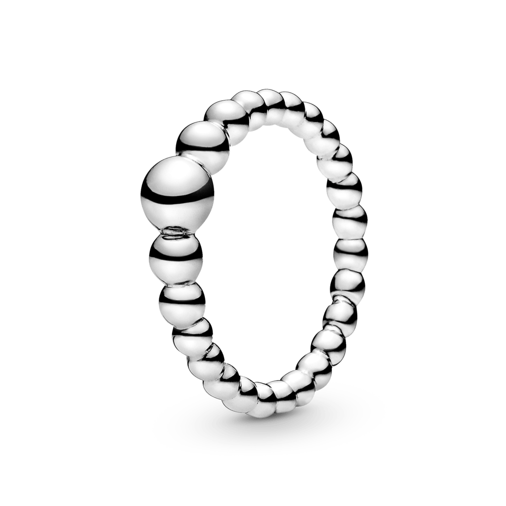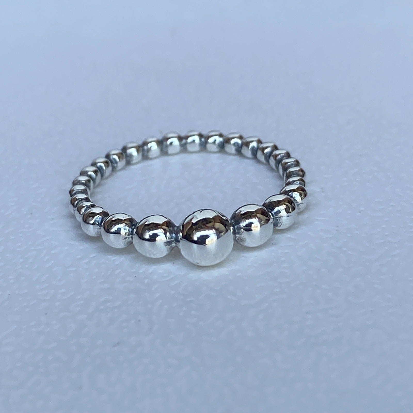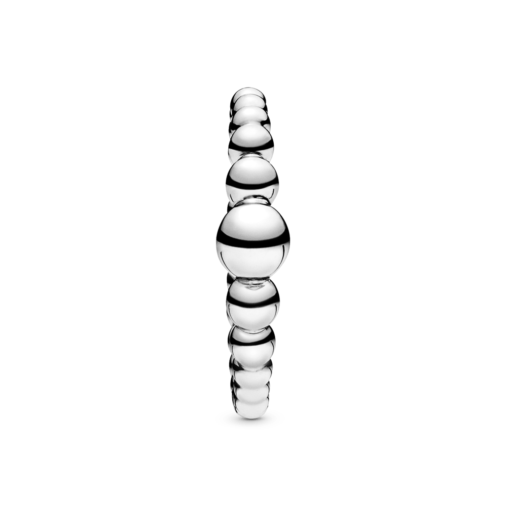Luminosas Contas Em Prata De Lei Envolvem Seu Dedo, Começando Pequenas E Crescendo Para Um Tamanho Maior Na Parte Superior Do Anel.