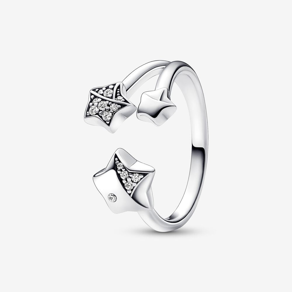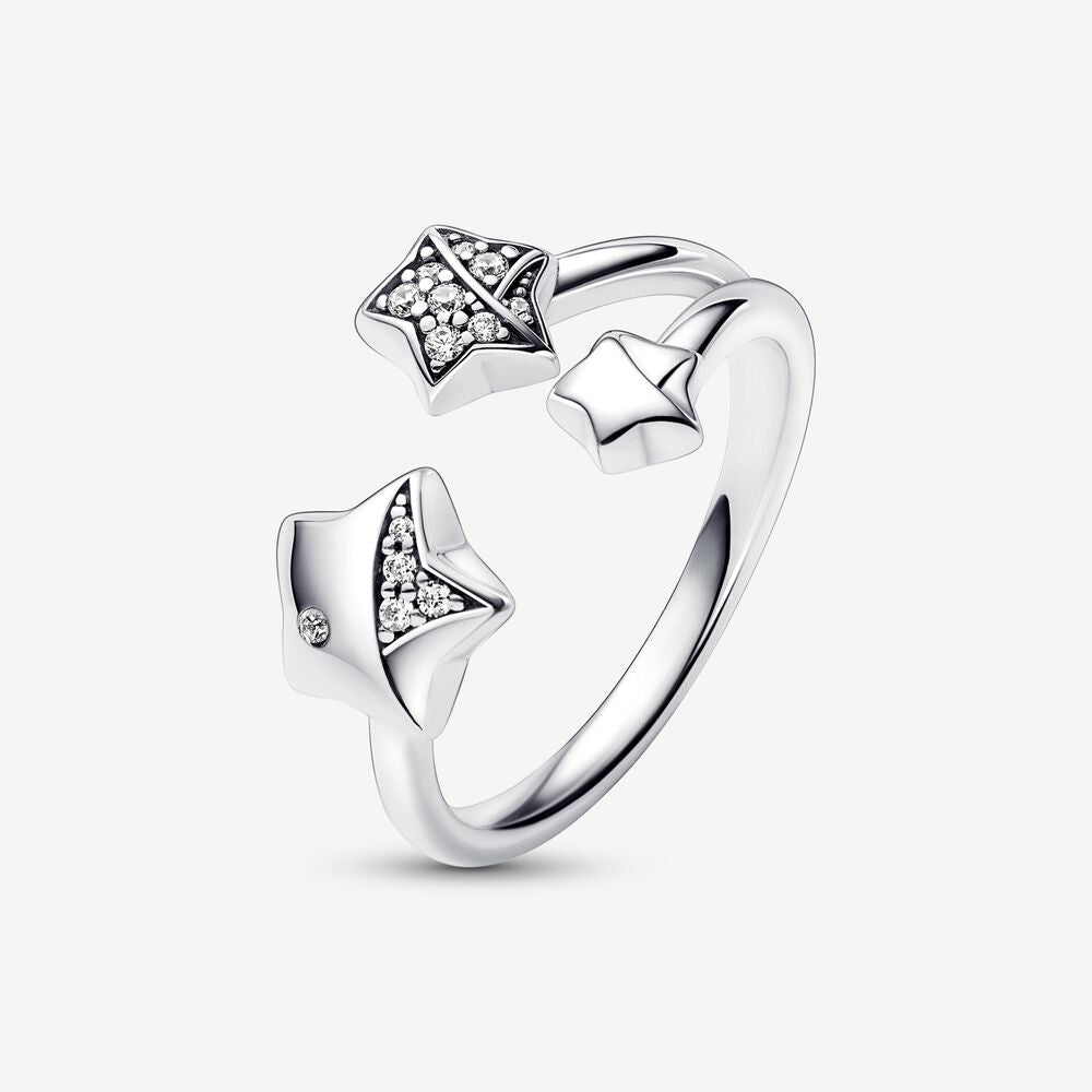 O anel tem um design de abertura frontal, e as duas extremidades da abertura são embelezadas com três estrelas - uma em uma extremidade e duas na outra (uma em cada um dos dois garfos); Há vincos ligeiramente convexos na superfície da estrela em uma extremidade, fazendo com que pareça um papel dobrado; Um canto é decorado com zircônia cúbica de diferentes tamanhos, e uma única zircônia quadrada é colocada na diagonal, ecoando uma à outra; As duas estrelas na outra extremidade também têm vincos ligeiramente convexos na superfície, que se parecem com papel dobrado; Um deles é coberto com zircônia cúbica pavé; a outra superfície polida; No interior do anel, a parte inferior de cada estrela é plana e o centro é pontilhado com detalhes de gravação de estrelas.