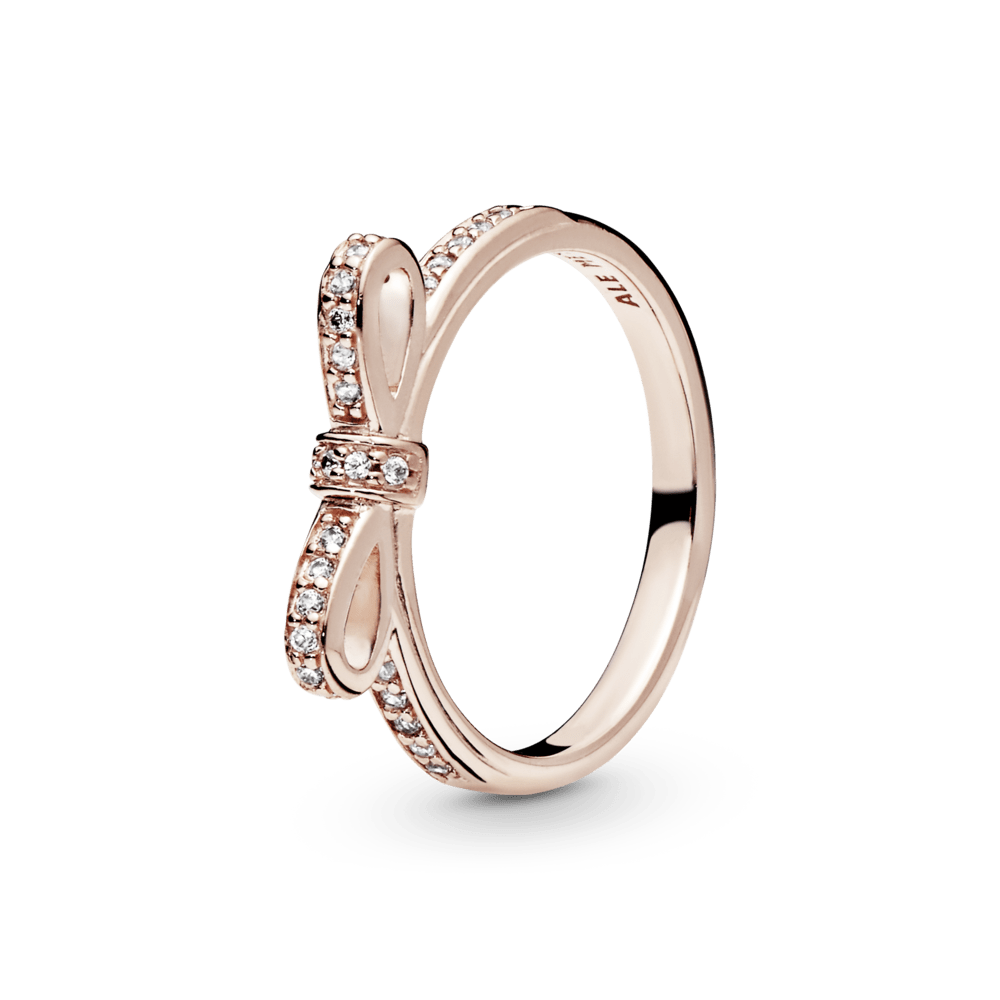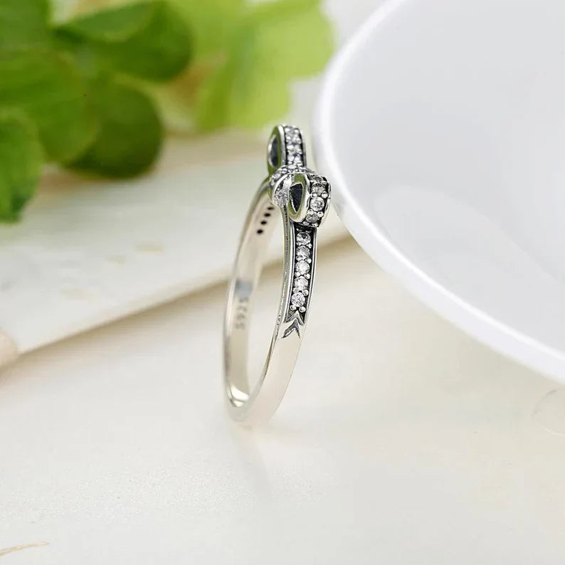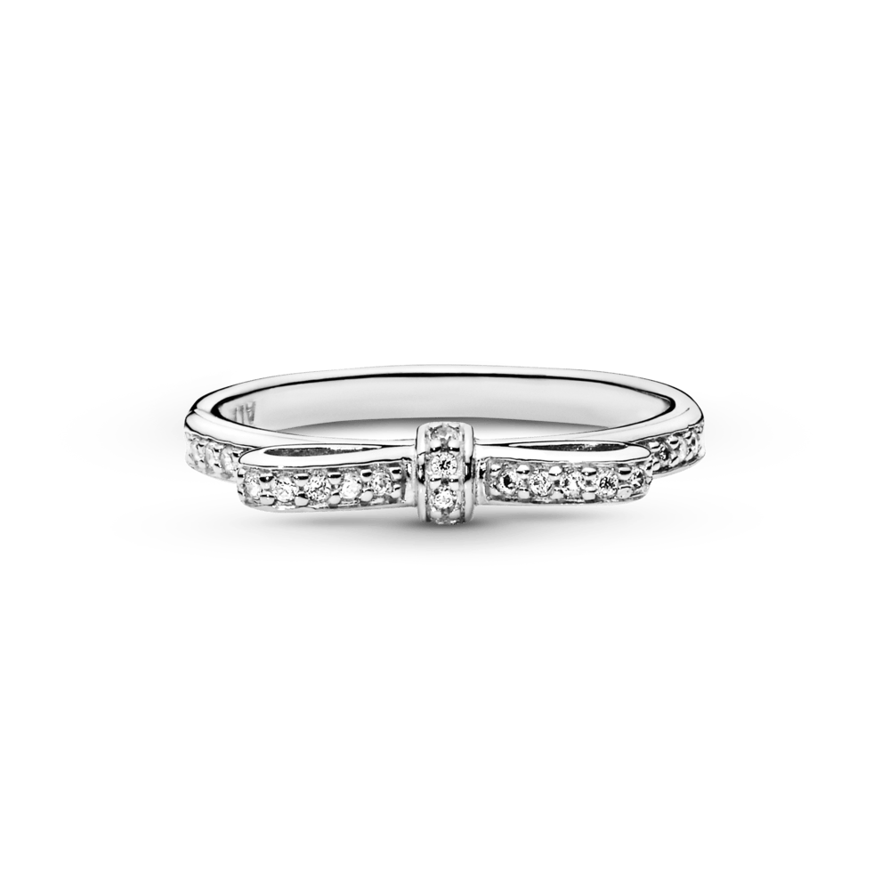 Clássico E Moderno! Anel De Prata De Lei Com Meio Aro Liso E Polido, Adornado Com Um Delicado Laço De Fita Cravejado Com 28 Pedras De Zircônia Cúbica Transparente. Use Sozinho Ou Em Conjunto Com Outro Anéis Pandora Para Criar Um Look Único!