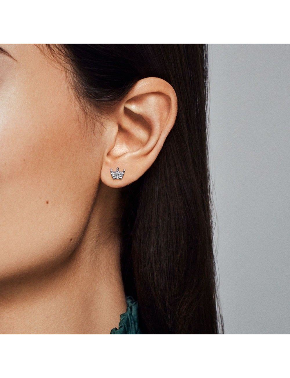 Crie uma conexão com a realeza ao usar estes brincos em prata de lei lindamente fabricados em forma de elegantes coroas com detalhes em contas. As pedras transparentes brilhantes realçam o efeito de nobreza. Brincos de coroa em prata 925 com 28 zircônias cúbicas transparentes com cravação em contas.