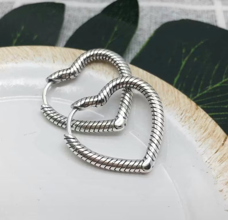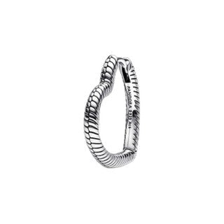 Brincos pelos quais você vai se apaixonar. Feitos em prata 925 com o icônico padrão de corrente de cobra da Pandora, esses aros assimétricos são um lembrete de que o verdadeiro amor nunca é uniforme. Use esses símbolos de amor próprio por conta própria ou estilize até três de seus berloques, pendentes e pingentes e conte ao mundo sua história.