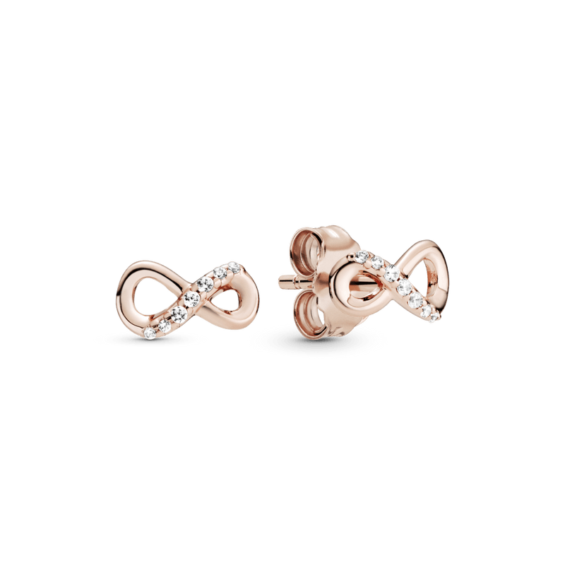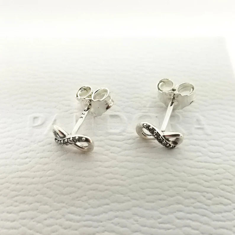 Os brincos com acabamento manual e feitos em prata de lei apresentam o querido símbolo do infinito adornado de pedras de zircônia.