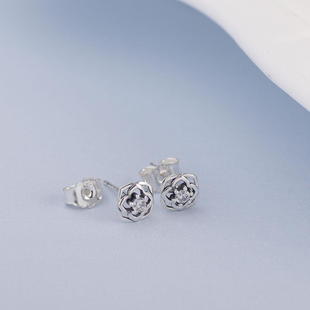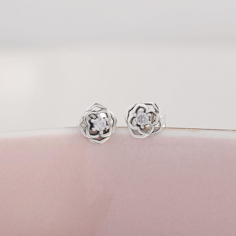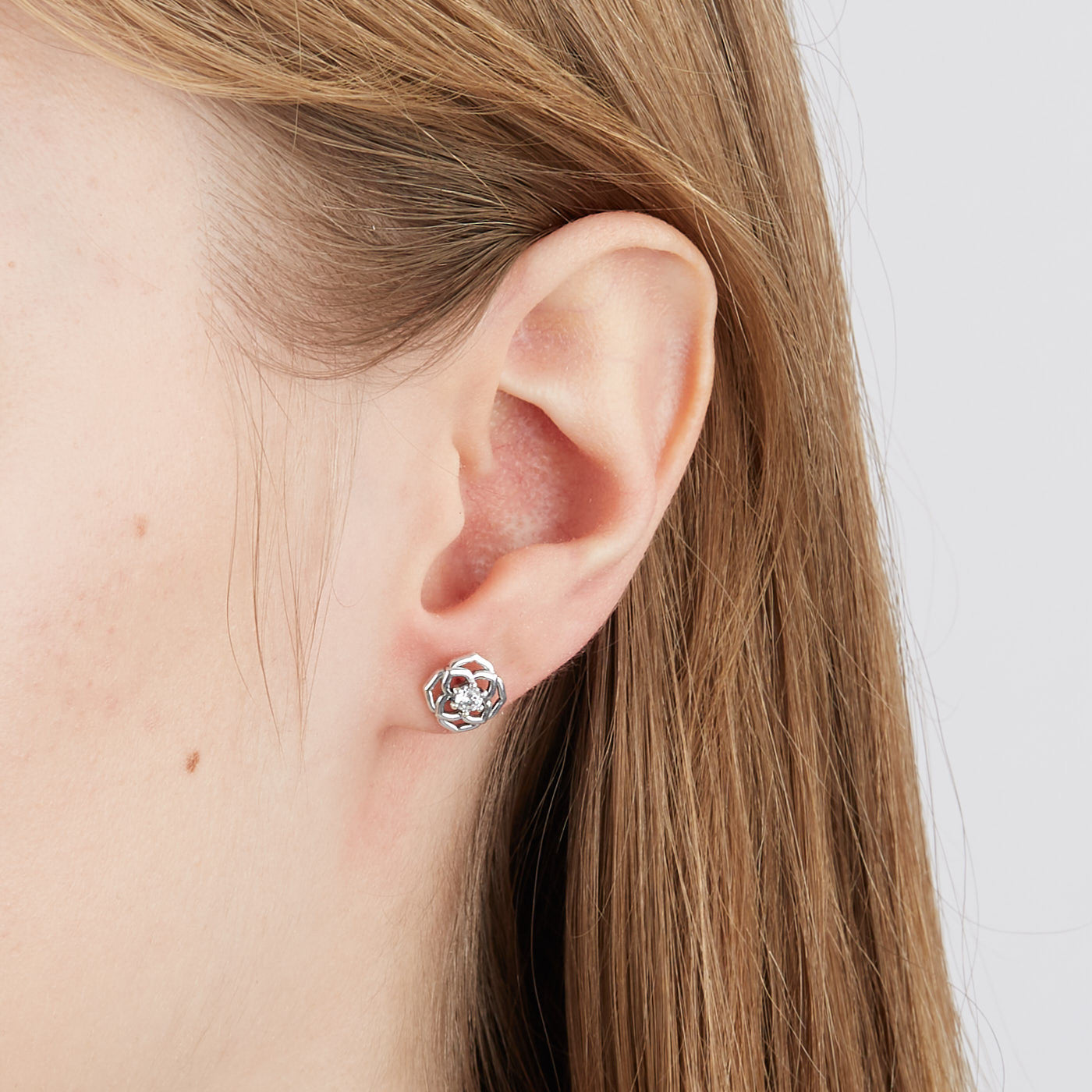 Faça uma afirmação com estes Brinco Petalas de Rosa. Com acabamento manual em prata, cada brinco apresenta a forma de uma rosa rendilhada ligeiramente convexa. Uma zircónia transparente adorna o centro de cada brinco, conferindo-lhe mais brilho. Conjugue estes brincos com um colar de corrente prateado, para um acabamento sofisticado, ou combine-os com outras peças com a temática das rosas, para criar um look uniforme. Em alternativa, ofereça a quem mais ama um par de brincos espigão clássicos que serão estimados para sempre.