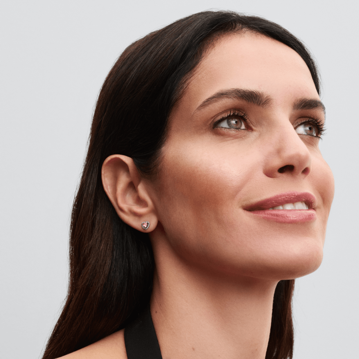 O Brinco Prata Coração Rosa Brilhante Elevado traz um design romântico e sofisticado, perfeito para quem ama detalhes delicados. Feitos em prata esterlina, esses brincos pequenos possuem um deslumbrante cristal rosa lapidado em formato de coração, cuidadosamente elevado e rodeado por um pavé de zircônias cúbicas, que adicionam ainda mais brilho e elegância. Inspirado nos sentimentos de amor e gratidão, esse par de brincos é uma escolha perfeita para presentear alguém especial ou para adicionar à sua própria coleção.