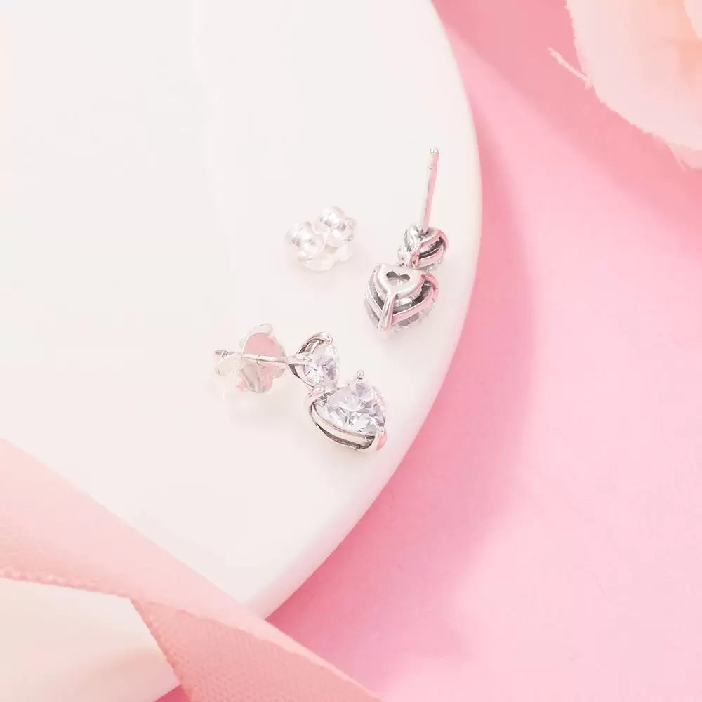 Os dois brincos de gota de coração apresentam duas pedras de zircônia cúbica em forma de coração. Uma versão moderna de um motivo clássico, é o presente perfeito para alguém especial ou um merecido presente para si mesmo.