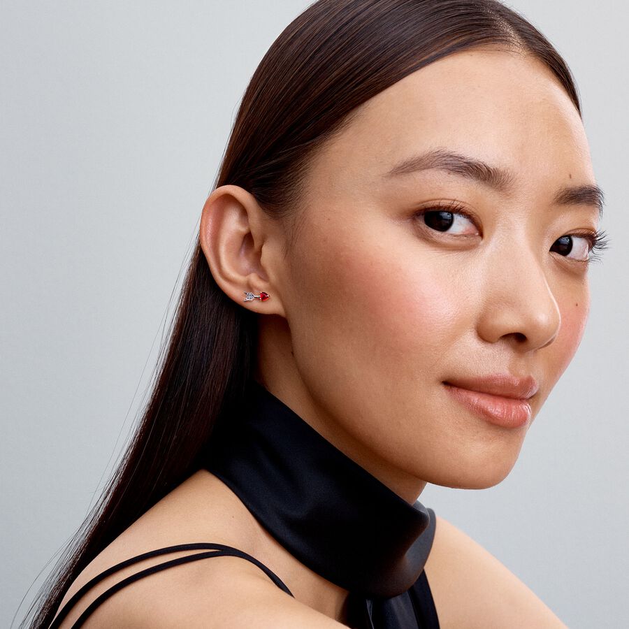 Seja atingido pela flecha do Cupido o dia todo, todos os dias, com estes brincos românticos. Feito de prata esterlina, cada brinco apresenta quatro zircônias cúbicas fixadas em contas, adicionando um toque de brilho. Um motivo de vidro Murano em forma de coração na ponta cria a ponta da flecha. Perfeito para uso diário ou como presente para o sua namorada, celebre o amor com brincos que falam do coração.