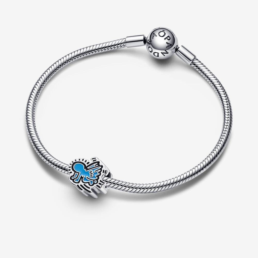 Encare o mundo com arte ao seu lado. Adicione uma obra de arte à sua detentora de charme com nosso K. Haring Charm Anjo Radiante. Feito de prata 925, o anjo icônico de Haring é estampado em esmalte azul em cada lado, com suas linhas ousadas capturadas em esmalte preto. Finalizado com o autógrafo do artista ao lado, este charme é um verdadeiro item de colecionador e canaliza a cena central da cidade de Nova York dos anos 1980 que serviu como inspiração e playground do artista.