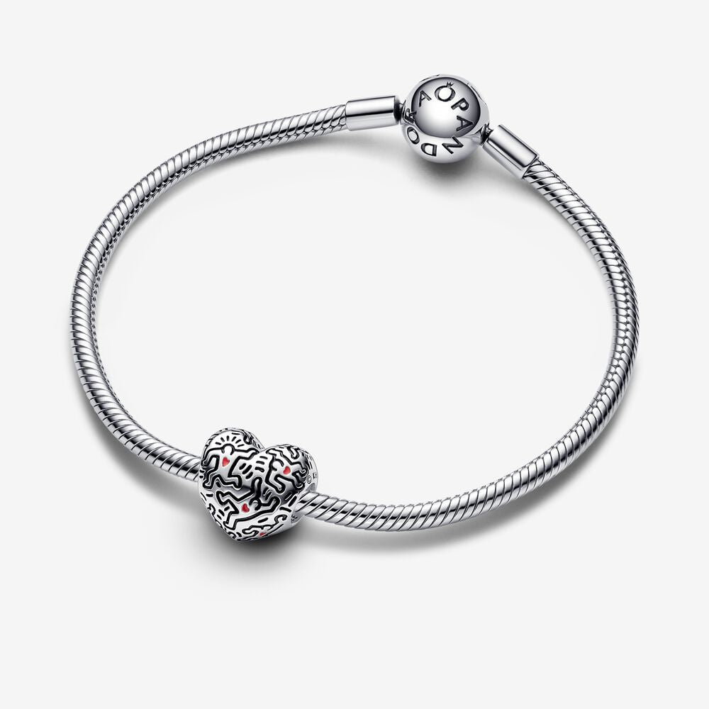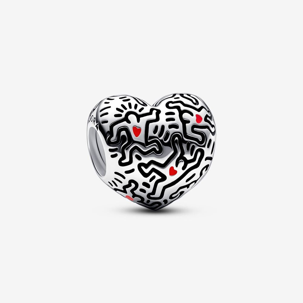 Onde as joias encontram arte. Libere sua criatividade em seu estilo com nosso K. Haring Charm Arte e Pessoas, com motivos das obras icônicas do artista, inspirados na cena do centro de Nova York nos anos 1980. O motivo característico de Haring foi recriado usando oxidação antiga preta e esmalte vermelho, para que você possa carregar o espírito da arte de rua em seu suporte de charme favorito.