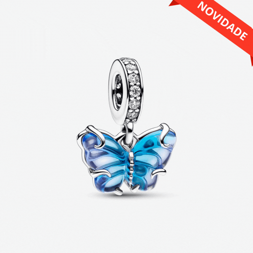 Cresça e transforme-se no seu melhor eu. Este charme de prata 925 com acabamento manual apresenta asas de vidro Murano em um gradiente azul bicolor, com um padrão de prata de lei recortado na parte de trás que mostra através do vidro, e redemoinhos de prata esterlina na frente. Microesferas no corpo da borboleta e pavé na fiança adicionam um toque de detalhe delicado e brilho. Adicione esta borboleta azul ao seu estilo como um poderoso símbolo de esperança, transformação e novos começos.