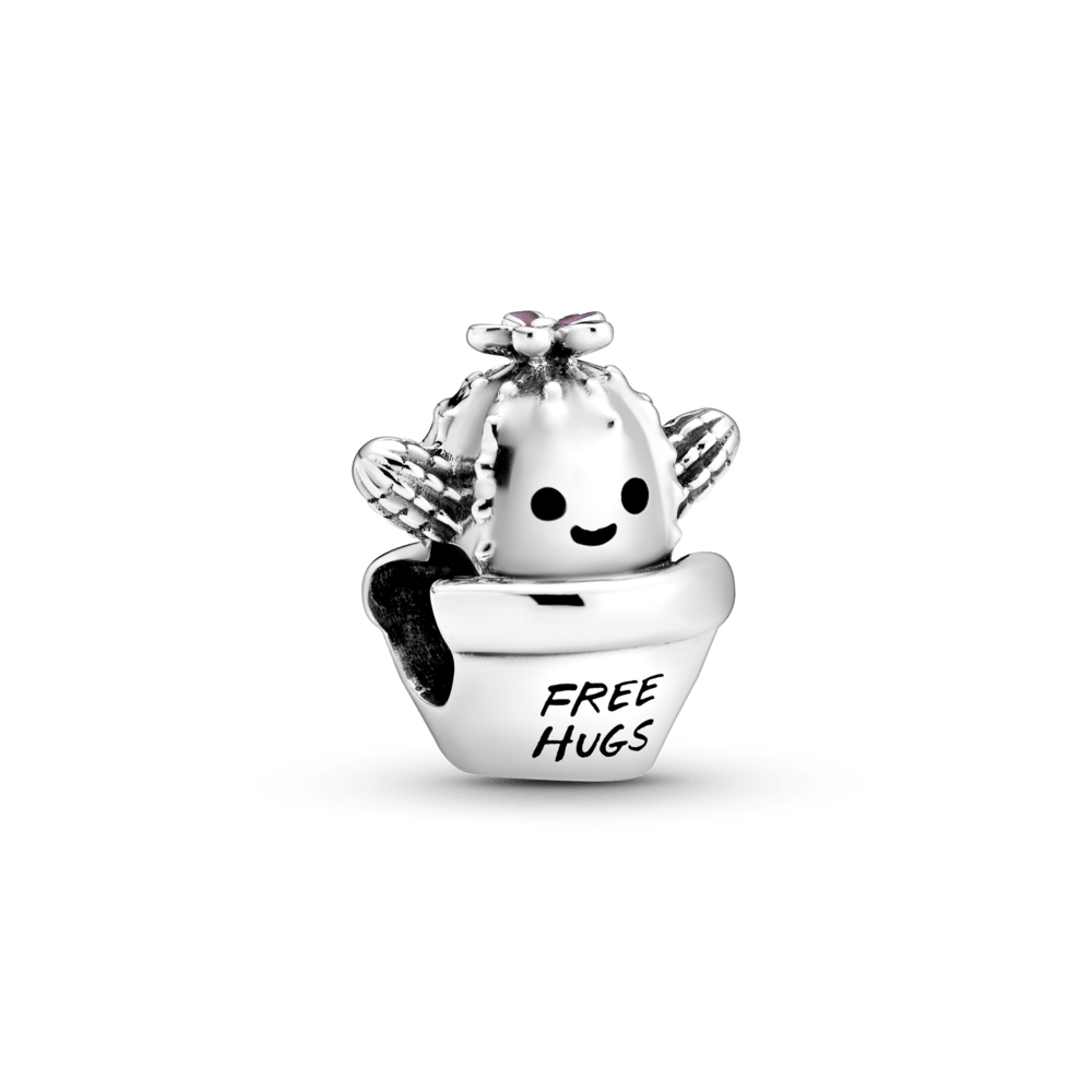 Este adorável charm de cacto com abraços grátis prova que nem todos os cactus têm que ser afiados e espinhosos. inspirado nas coisas que você ama e é apaixonada, este charm em prata 925 ostenta um adorável charm de cacto sorridente em um pequeno vasinho com a gravação “free hugs” (abraços grátis). também conta com uma flor rosa na parte superior de sua cabeça e uma textura espinhosa. use-o para demonstrar seu lado lúdico ao mundo e quanto você ama dar abraços.