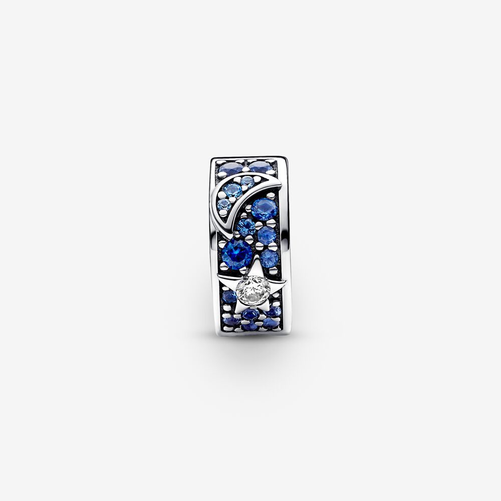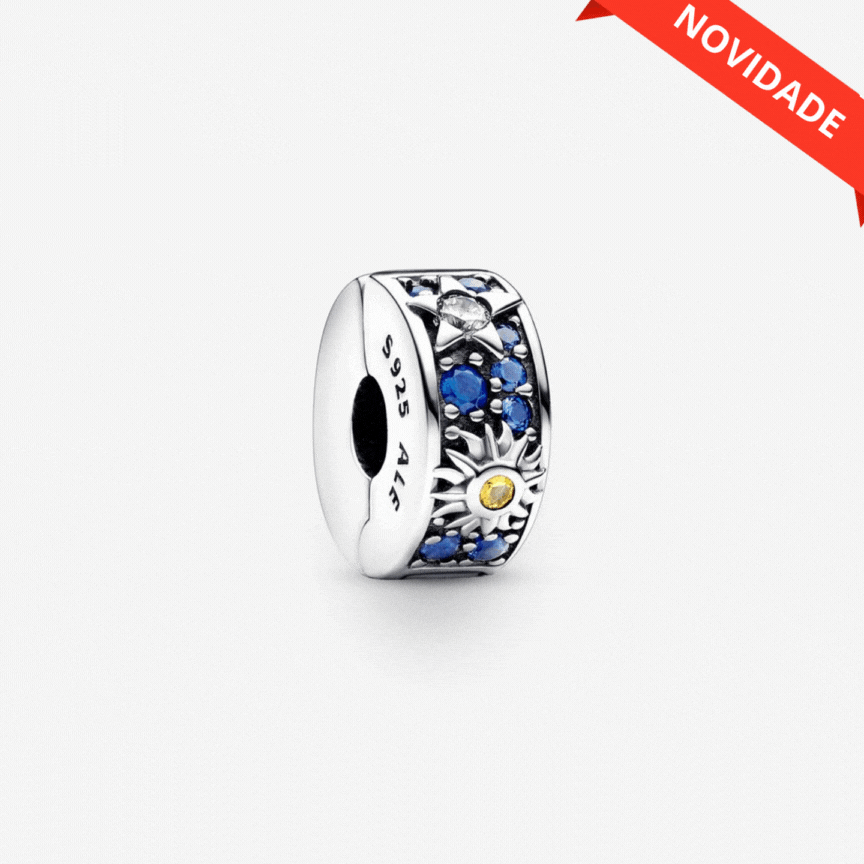 Use o poder dos símbolos com o Charm Clipe Celestial Sol, Lua e Estrela. Este charme de clipe prateado é inspirado na beleza misteriosa do universo, combinando motivos de sol, lua e estrelas trazidos à vida com pedras cintilantes em tons claros, amarelos e azuis profundos. É forrado com silicone para que fique no lugar na corrente e não caiba sobre roscas (divisórias de pulseira elevadas). O toque final perfeito para o seu estilo de pulseira celestial.