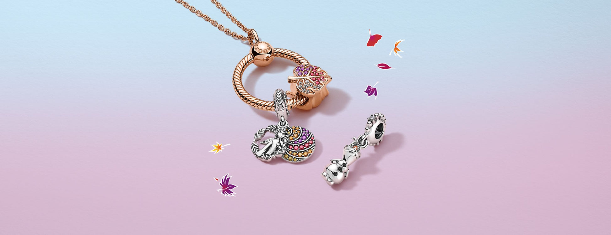 Inspire-se com a nova coleção de Charms do aclamado filme da Disney Frozen, com os mais queridos personagens, Elza, Olaf, Anna, Nokk.
