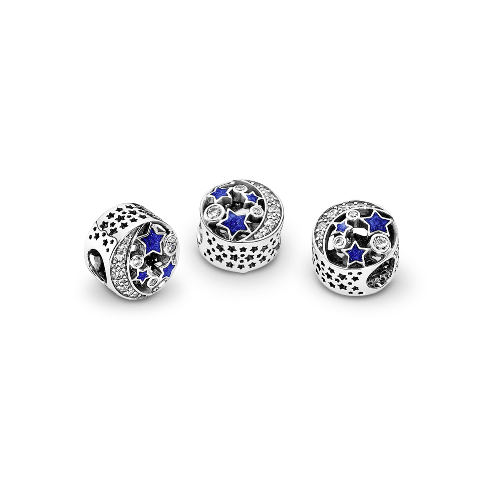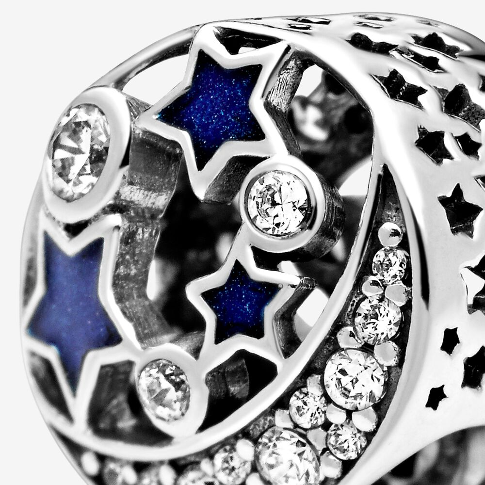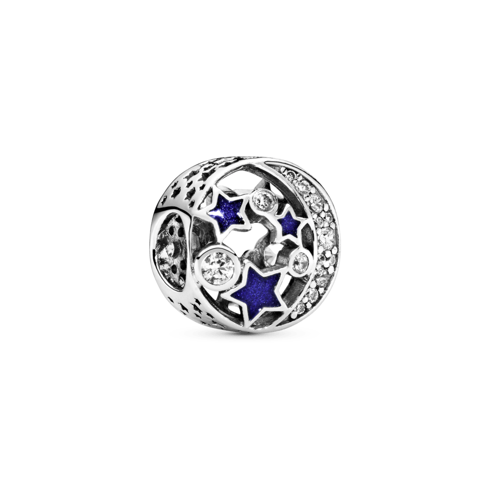 Adicione um toque de mistério ao seu visual com este pingente de céu noturno em prata 925 combinado com a pulseira Moments. Com estrelas de esmalte azul meia-noite pintadas à mão e uma lua crescente cintilante adornada com pedras de zircônia cúbica, este charme deslumbrante adicionará um toque de magia ao seu visual. Estrelas ocas são gravadas na lateral, criando uma sensação etérea. Ele pode ser combinado com outras peças com tema do céu para um visual de fantasia cravejado de estrelas ou como um presente para "aquela estrela" em sua vida.