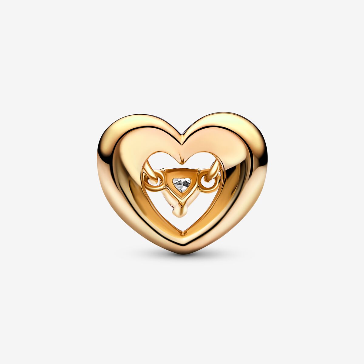 O que o coração quer. Inspirado na união de duas mãos para formar um gesto de coração, nosso pingente de coração radiante e pedra flutuante faz uma doce declaração sobre o poder do amor. Feito à mão em banho de ouro rosa 14k, um coração aberto em 3D revela uma zircônia cúbica facetada em forma de coração pendurada dentro, brilhando quando capta a luz. Presenteie quem te completa.