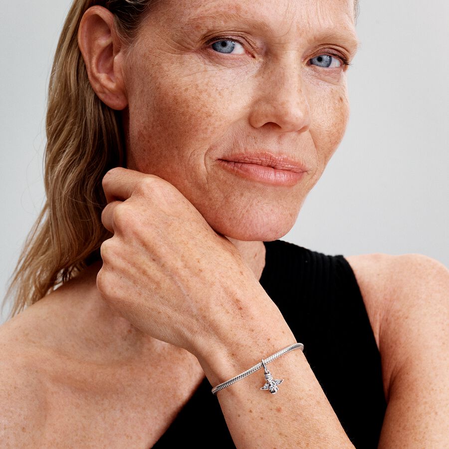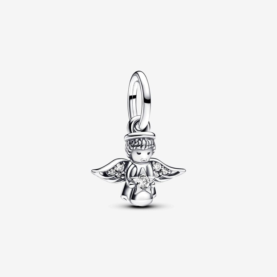 Carregue a alegria e a maravilha da temporada com nosso Charme de Anjo Cintilante. Um anjo de prata esterlina com asas brilhantes de pedra carrega uma estrela cintilante, brilhando sua luz festiva para as festas de fim de ano e além. Carregue-o como um lembrete de que você brilha em todos os lugares que vai ou presenteie-o a quem precisa de um pouco mais de alegria natalina em sua vida.
