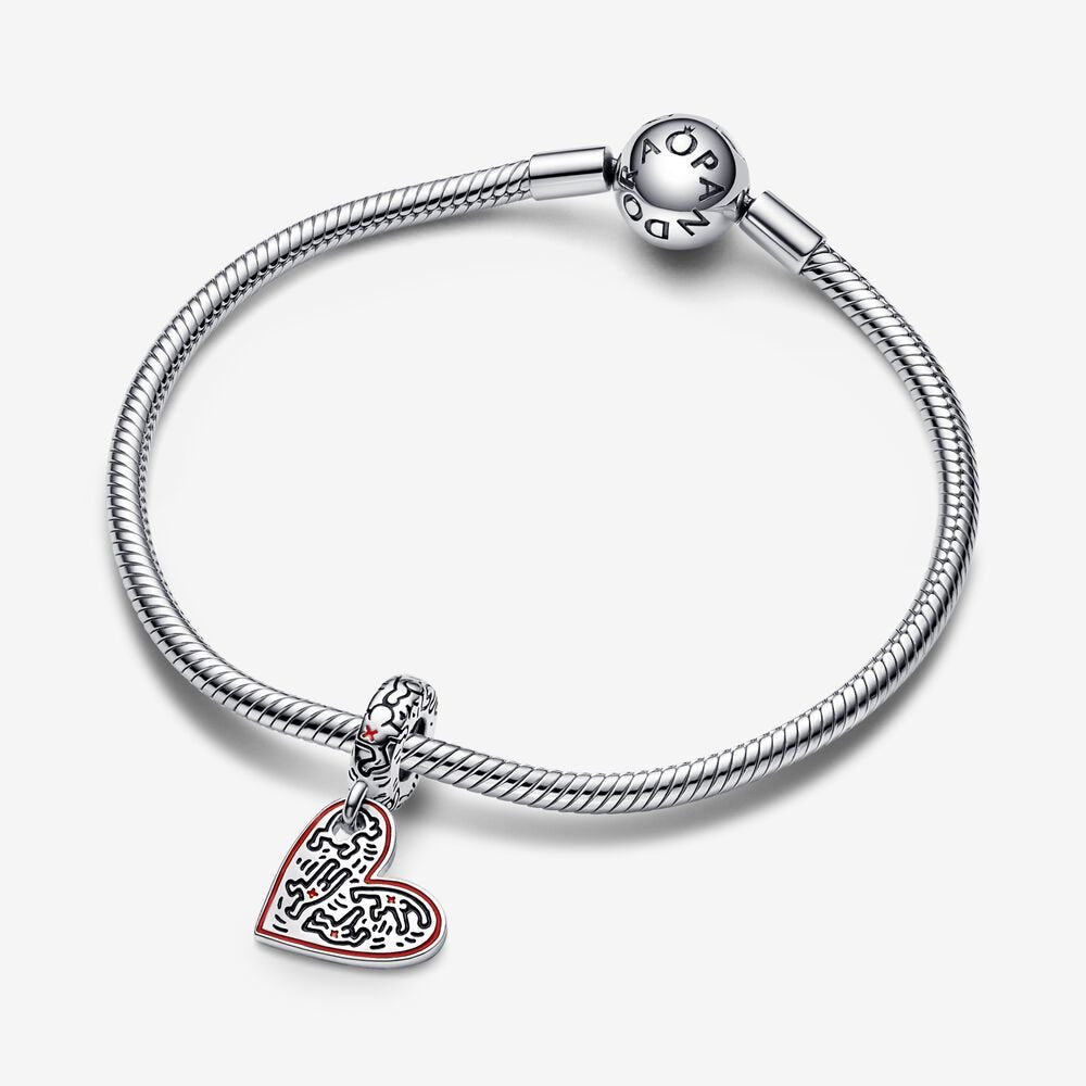 Mostre seu amor pela pop art através de seu estilo com nosso K. Haring Charm de Arte de Linha Pessoas Coração. Figuras icônicas em movimento das obras do artista com cruzes vermelhas de esmalte decoram um lado do disco em forma de coração e a fiança. A parte de trás do disco apresenta a assinatura do artista e o logotipo.