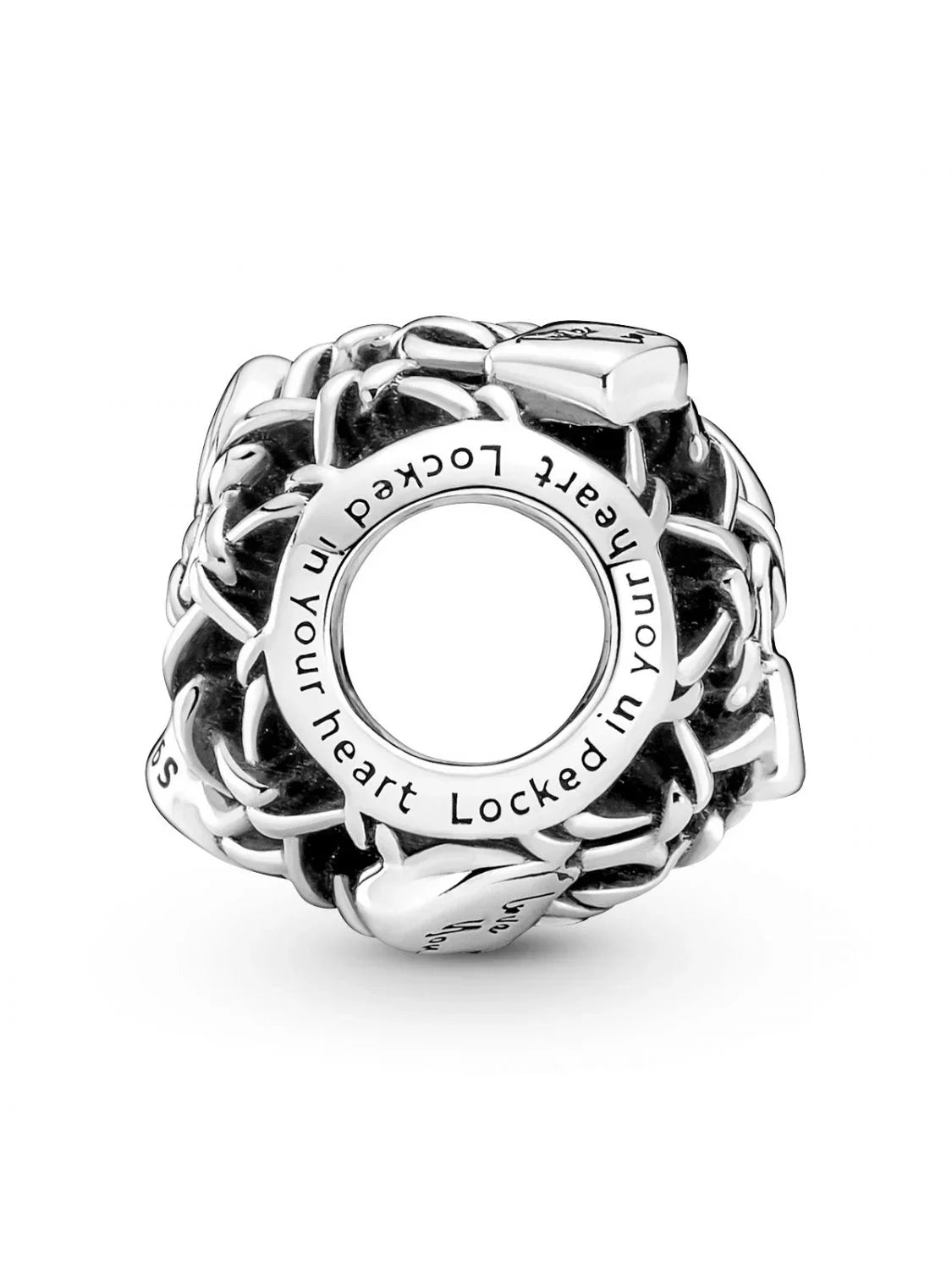 Novos encantos são a chave para o seu coração? Desbloqueie novos estilos com este Charm de Cadeado de Elo de Corrente a Céu Aberto. Acabado à mão em prata 925 em um intrincado padrão recortado, o pingente apresenta pequenos cadeados inspirados nos cadeados de amor colocados em pontes ao redor do mundo por casais felizes. Gravado com as mensagens "Locked in your heart", "True love" e "Love you", este pingente é a maneira perfeita de guardar as memórias de quem você ama em seus porta-pingentes favoritos.