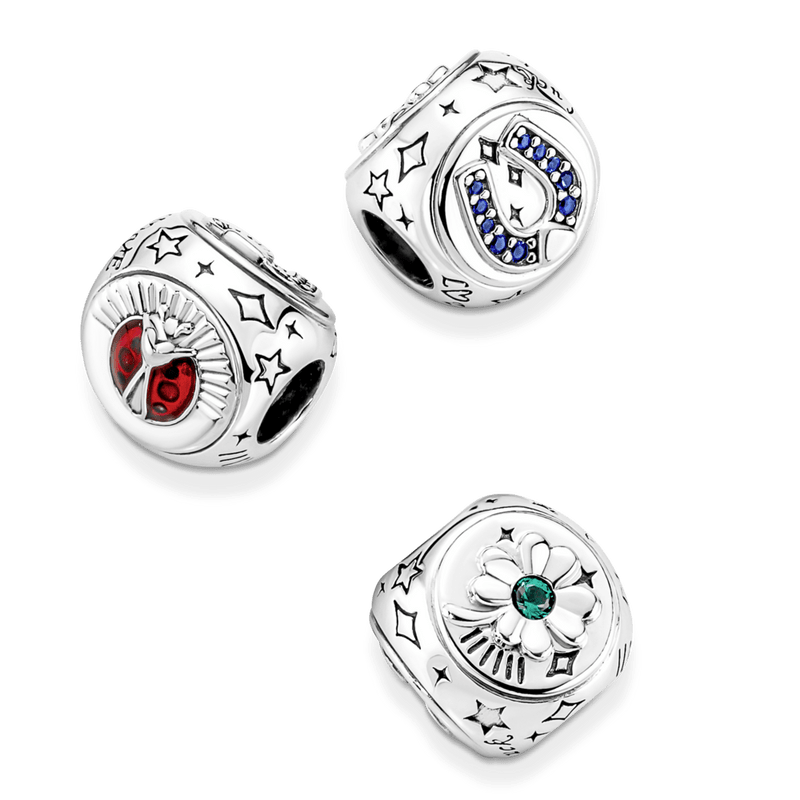 Charm de Tres Lados Trevo, Ferradura e Joaninha
