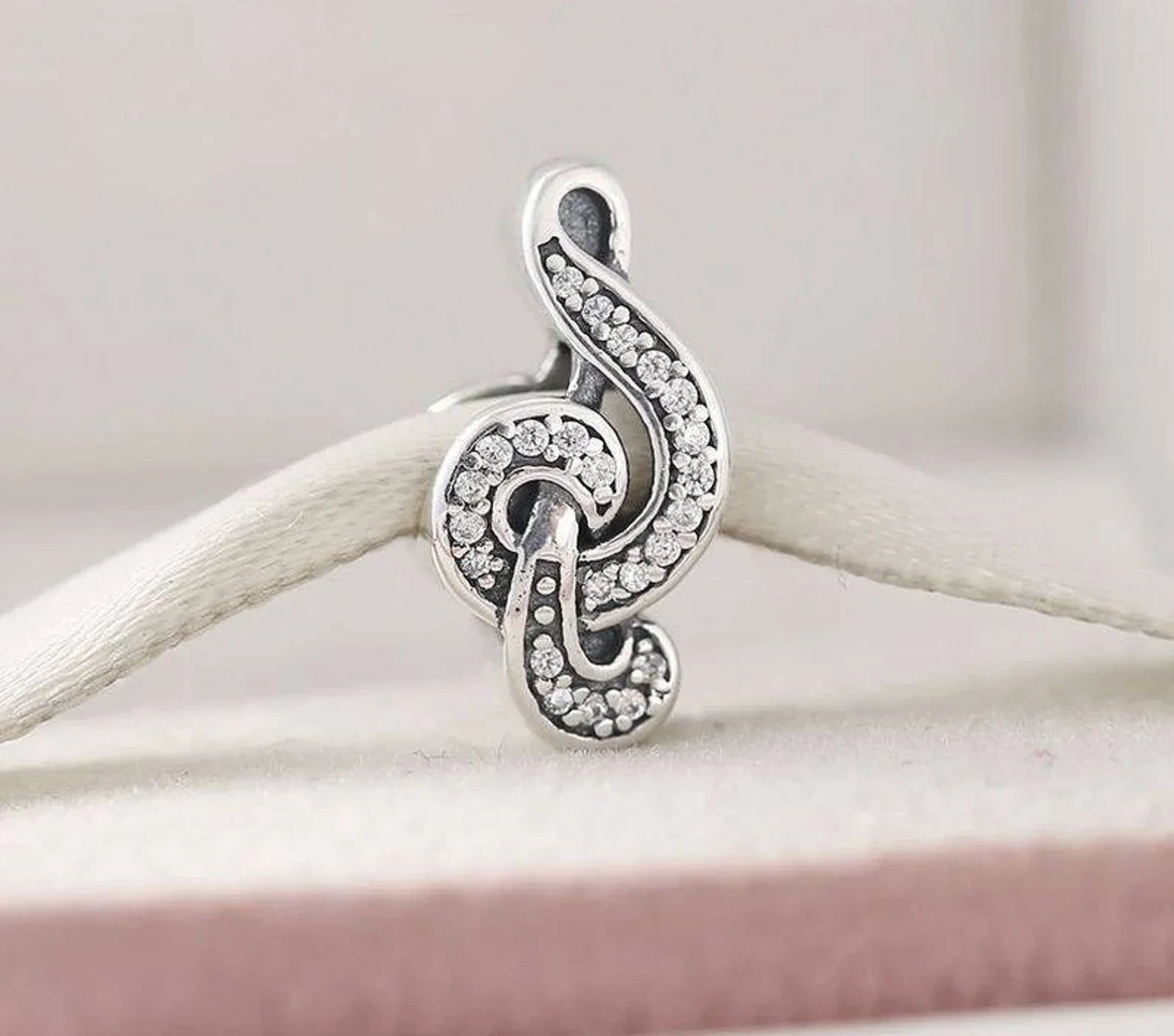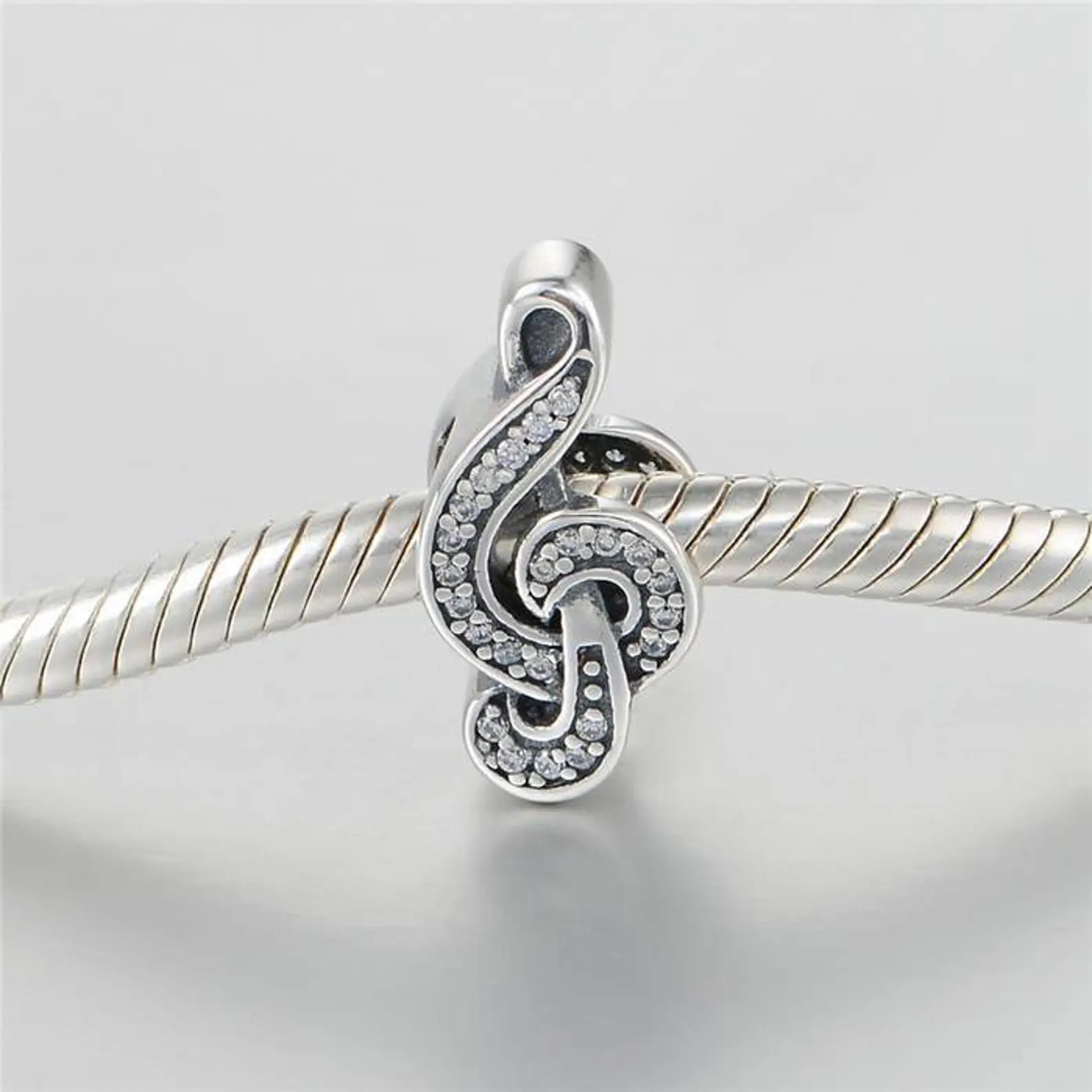 Um charme elegante de clave de prata esterlina com zircônia cúbica