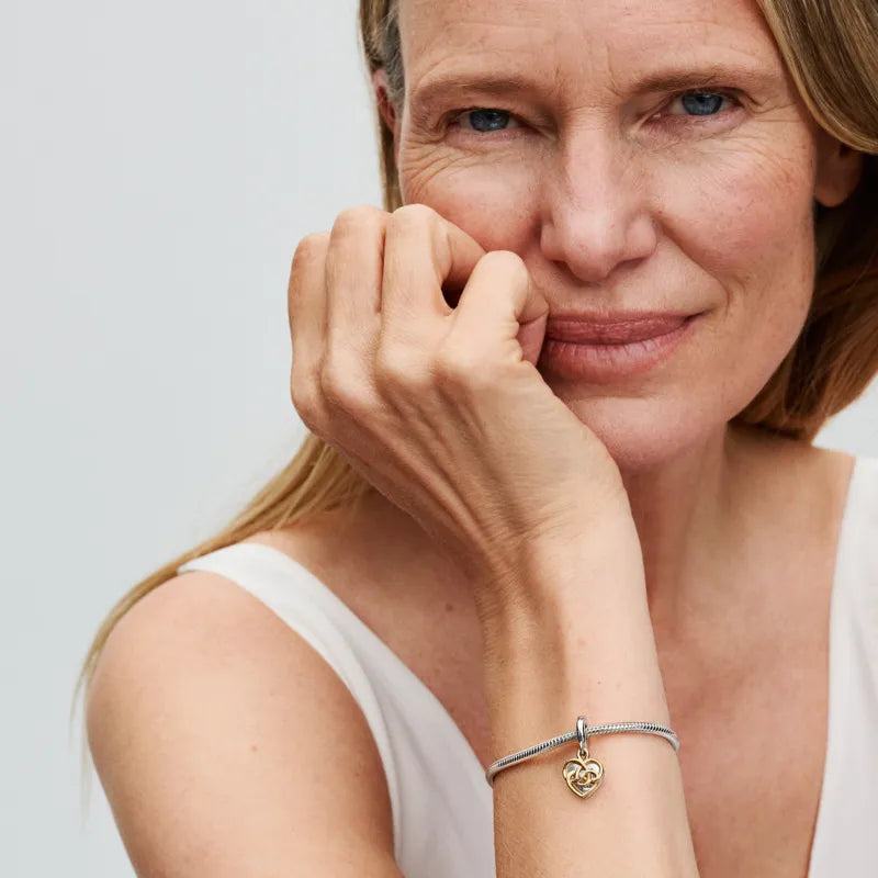 O poder do amor maternal brilha em nosso charm duplo para mãe. Uma joia de ouro e prata, gravável e com diamante cultivado em laboratório. Apresentando um pingente de coração banhado a ouro 14k entrelaçado e vazado inspirado em um nó, ele personifica o amor infinito pela mamãe. . O outro disco feito em prata de lei traz uma gravação sincera que diz “Mãe, você é tão preciosa para mim”, enquanto seu verso pode ser gravado para um toque personalizado. Observe que cada diamante cultivado em laboratório é tratado com um aprimoramento de cor pós-crescimento chamado recozimento.