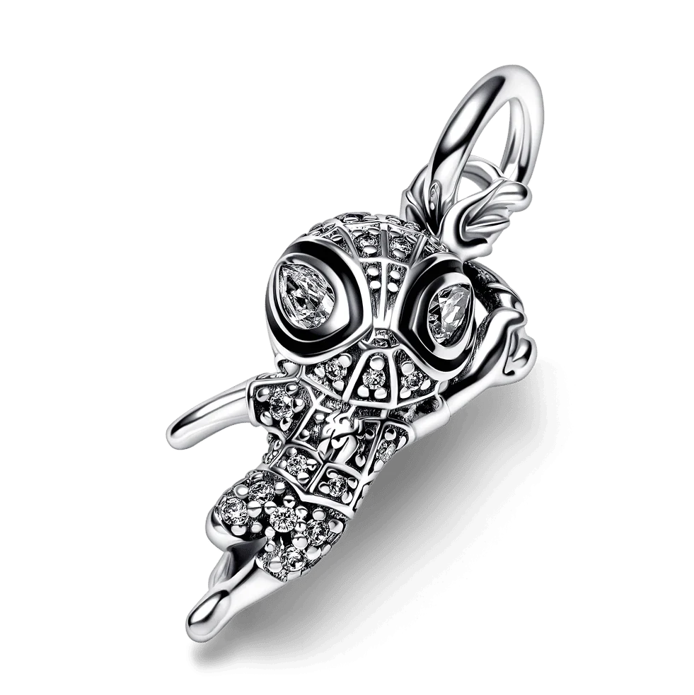 O Charm é feito prata esterlina, é adornada com várias zircônias sintéticas. Por exemplo, você pode combinar um pingente com uma pulseira, colar ou chaveiro, e criar uma peça de joias do Homem-Aranha que é perfeita para você.