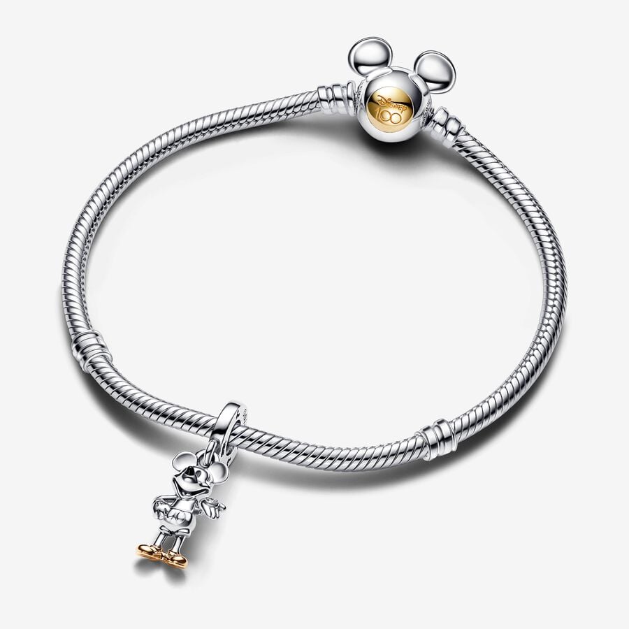 Colete um pedaço da história da Disney com o Charm Mickey 100º Aniversário. Este charme prateado retrata o icônico Mickey Mouse em detalhes realistas, com um diamante cultivado em laboratório brilhando de sua mão, sapatos de ouro de 14k e detalhes de esmalte preto aplicados à mão em seus olhos e nariz. Um símbolo de imaginação, otimismo e diversão, este charme do Mickey Mouse certamente fará qualquer um sorrir.