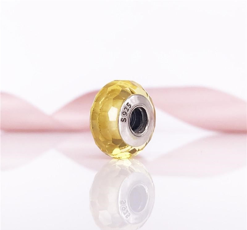 Charm de prata 925 facial abstrato com vidro Murano de cor verde ou amarelo.