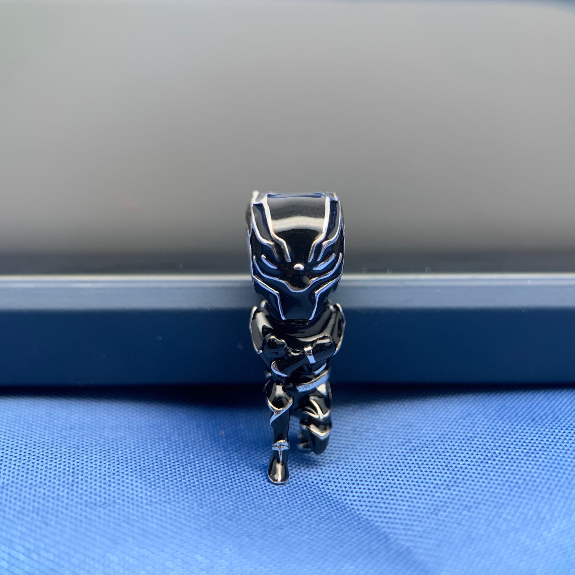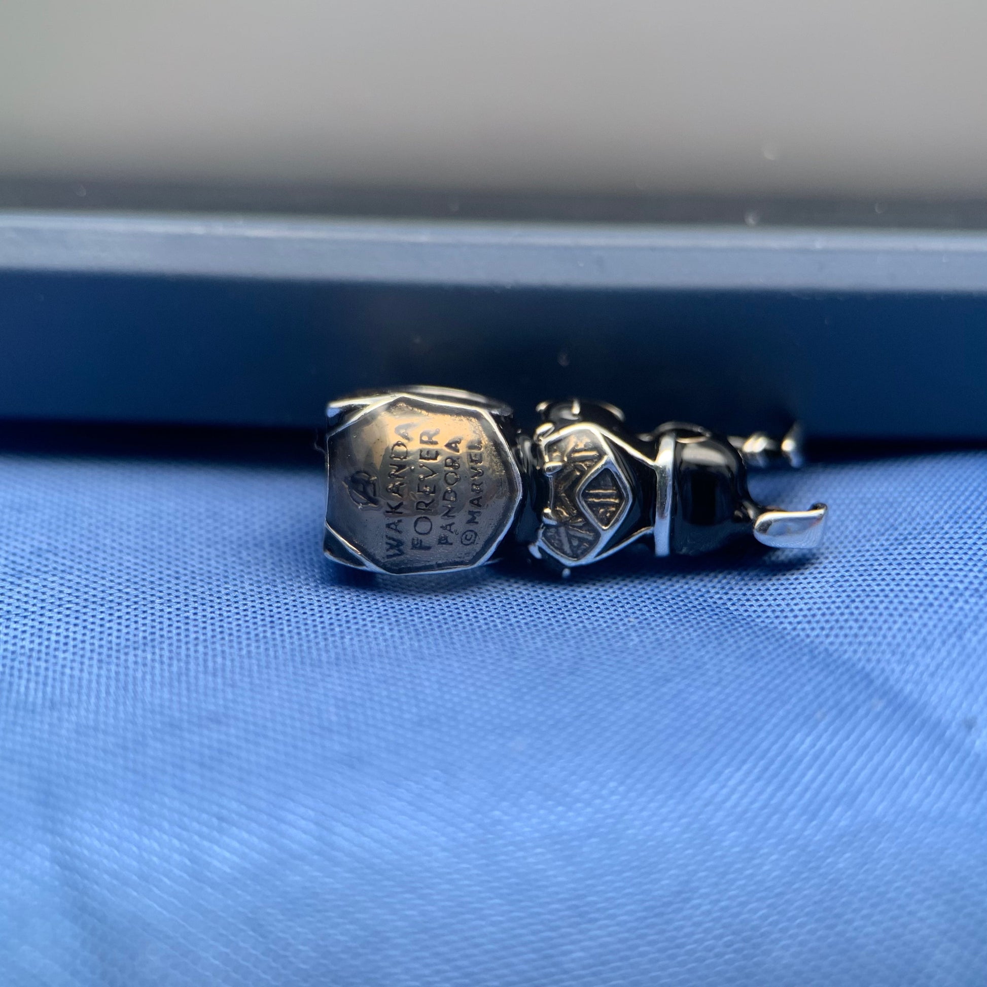 Opte pela lealdade com nosso Charm Pantera Negra de Os Vingadores da Marvel e compartilhe seu amor pelo Universo Cinemático Marvel com o mundo. O rei-guerreiro é projetado em sua pose característica e ostenta esmalte preto pintado à mão com linhas em prata de lei definindo seu traje. "Wakanda Forever!" está gravado na parte de trás do capacete.