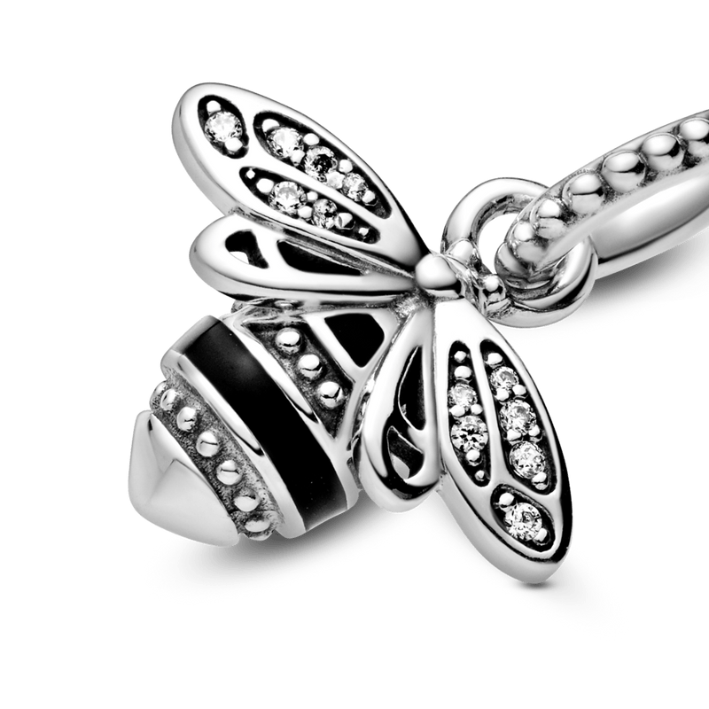 A abelha majestosa foi reimaginada neste charm pendente de prata esterlina com suas asas abertas. Inspirado pelo forte senso de companheirismo na colmeia, o charm de abelha apresenta detalhes de zircônia cúbica e esmalte preto aplicado à mão. Deixe o pendente da abelha abrir sua mente para o fato de que nada é impossível e que a vida é mais doce quando vivemos juntos em paz e harmonia.