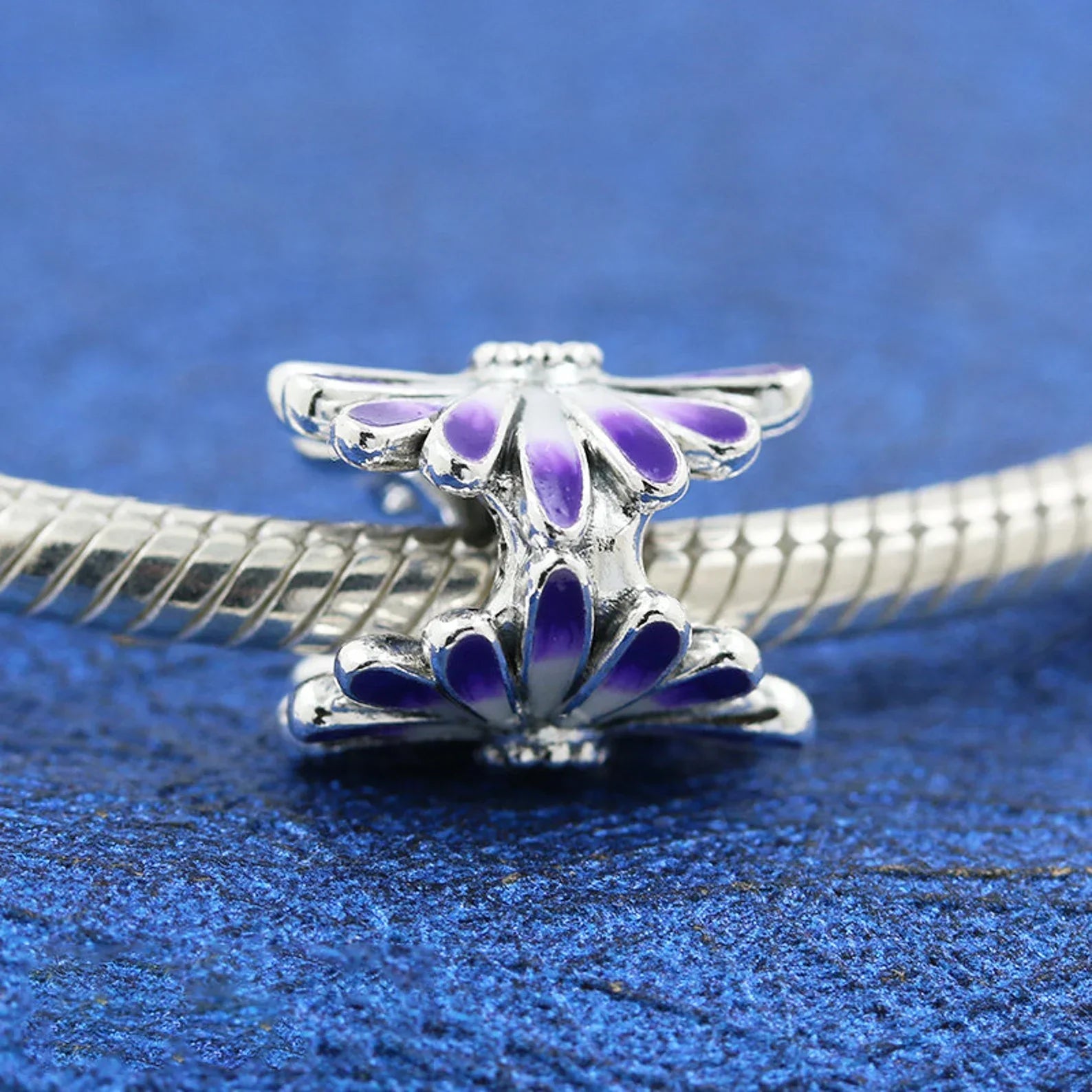 Use uma flor que dura para sempre com o Charm Flor Margarida Roxa. Este charm de flores apresenta duas flores de margarida em forma convexa com centros de pedra de zircônia cúbica cintilante cercada por micro contas e pétalas pintadas com esmalte sombreado lavanda aplicado à mão, roxo e branco. Inspirado pela ideia de que cada flor é única, esta peça de prata de lei representa a primavera, a diversidade e a comunidade. Deixe-o tornar cada dia, roupa e ocasião um pouco mais alegres.