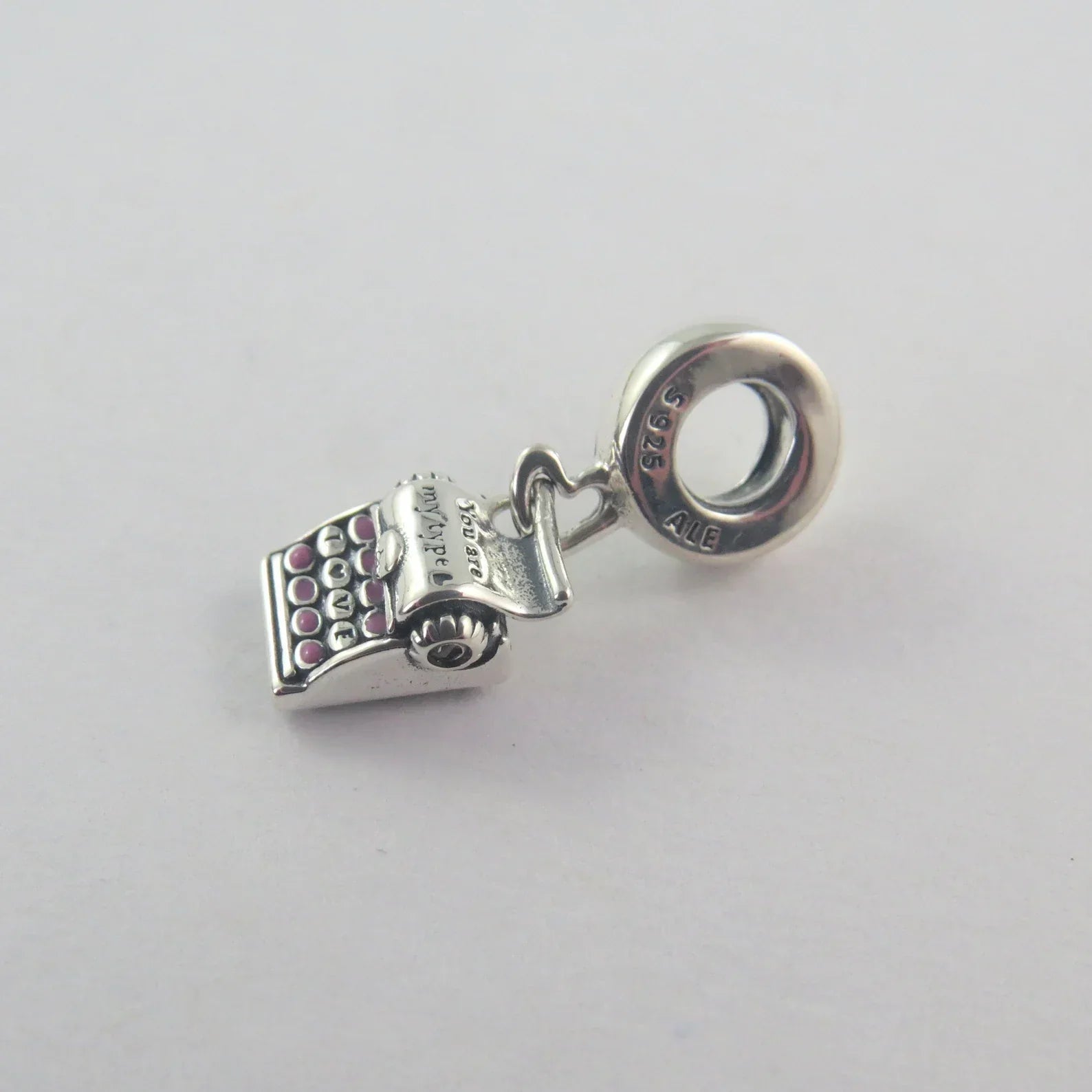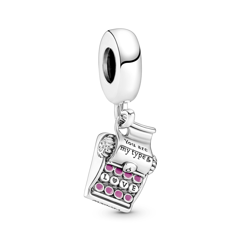 Quer mostrar seu carinho para alguém especial? Nosso Charm Pendente Máquina de Escrever diz tudo – literalmente. Com a gravação “You are my type” (Você é meu tipo), este fofíssimo charm pendente é finalizado à mão em prata de lei e decorado com esmalte rosa e duas zircônias cúbicas redondas com lapidação brilhante. A palavra “LOVE” (Amor) aparece nas teclas da máquina de escrever, simbolizando que o amor está no centro de tudo.