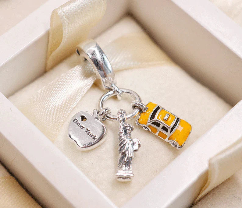 A Estátua da Liberdade, o icônico táxi amarelo e até mesmo uma ''Big Apple'', este charm pendente divertido de prata esterlina o incentiva a dar uma grande mordida na cidade que nunca dorme.