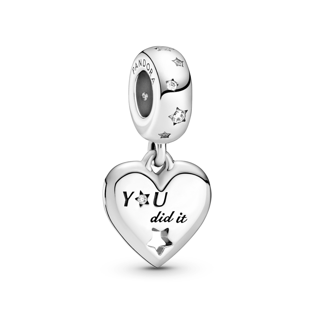 Charm Pendente Parabens Com Coracao e Estrelas Conquista