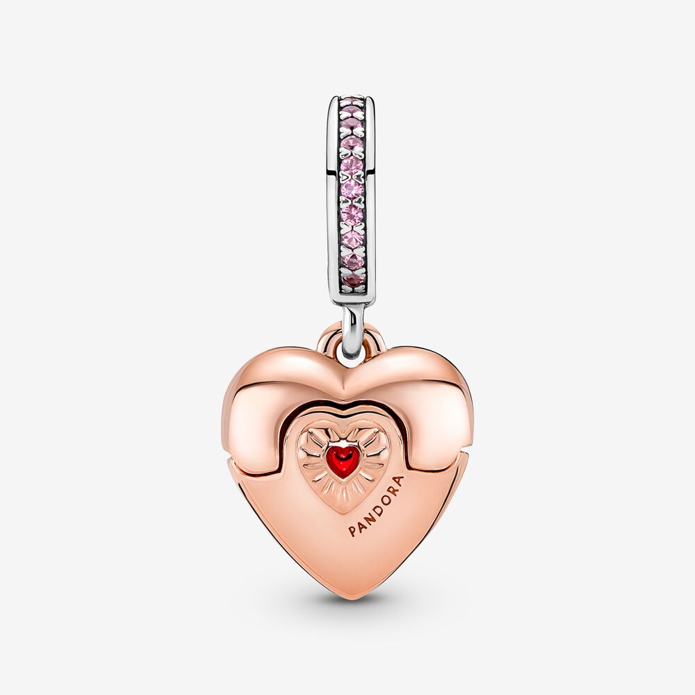 Pingente Caixa Coração Confissão de Amor prata 925 e liga de cobre-prata única Pedras artificiais: 22 pedras de zircônia cúbica de oleandro lapidação brilhante redonda com contas Esmalte: vermelho claro pingente de caixa de coração 3D que pode ser aberta.