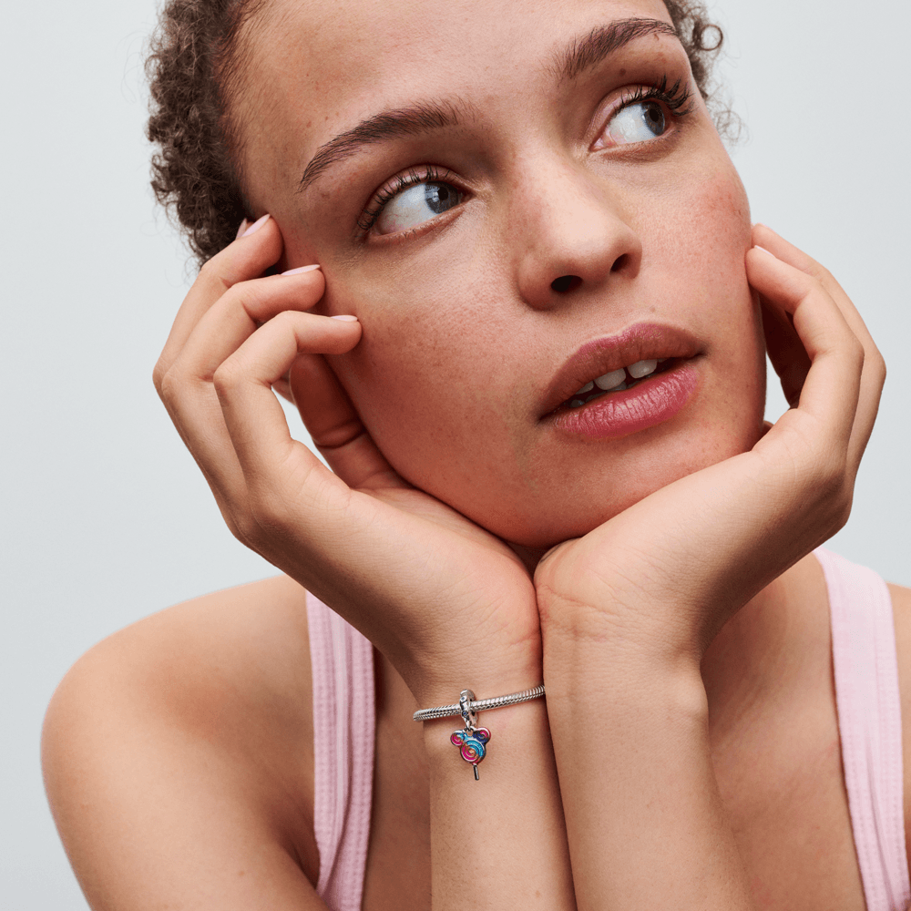 Adicione um toque divertido e nostálgico à sua coleção com o Charm Pirulito do Mickey. Inspirado nos doces clássicos dos parques da Disney, este charm pendente em prata esterlina apresenta um pirulito em formato da icônica silhueta do Mickey Mouse, com esmalte colorido vibrante em tons de arco-íris. A fiança texturizada é adornada com pedras coloridas, trazendo ainda mais magia à peça. Perfeito para fãs da Disney, este charm celebra a alegria e os momentos inesquecíveis da infância. Combine com outros charms Disney para um look encantador!