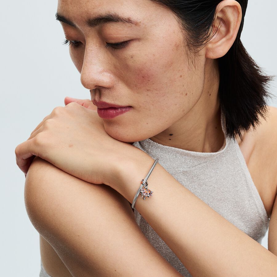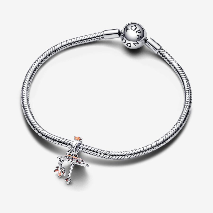 O guarda-chuva pende diagonalmente em um ângulo, a tampa é aberta com detalhes intrincados, a ponta do guarda-chuva é incrustada com um pedaço de vidro, quatro sulcos polidos tridimensionais se estendem da ponta do guarda-chuva, dividindo a tampa em quatro, cada sulco é decorado com um padrão em forma de diamante no final, e uma zircônia cúbica é embutida no interior, cada uma das quatro áreas da tampa é decorada com uma folha de bordo tridimensional, pintada com tecnologia de esmalte degradê, a folha de bordo e a parte externa da capa são decoradas com detalhes abertos e vidro pavé pavê, o triângulo tridimensional no centro do dossel forma a ponta do dossel
