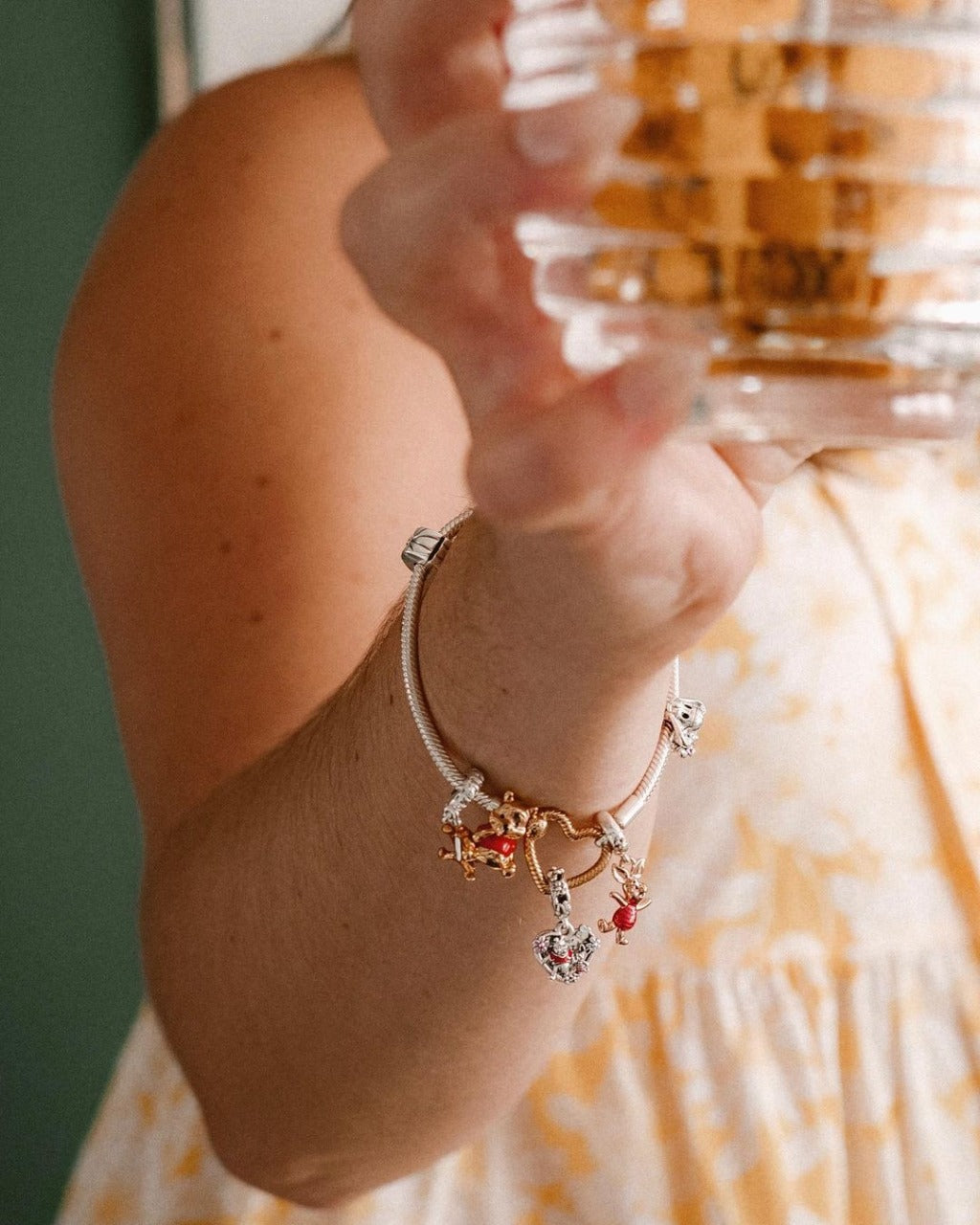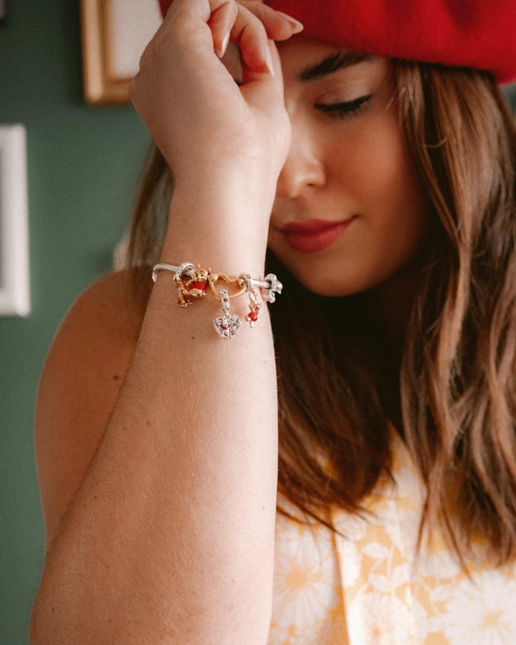 O Ursinho Pooh é conhecido por usar sua camiseta vermelha exclusiva. E como esperado, vemos ele usando o berloque esmaltado banhado a ouro. Como se estivesse pronto para cavar em um pote de mel, o charme também o apresenta com uma de suas patas levantadas.