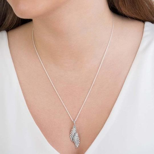 Pendente de penas de fênix em prata 925 com 86 miçangas, 25 microzircônias cúbicas transparentes com miçangas e colar de 70 cm, ajustável.