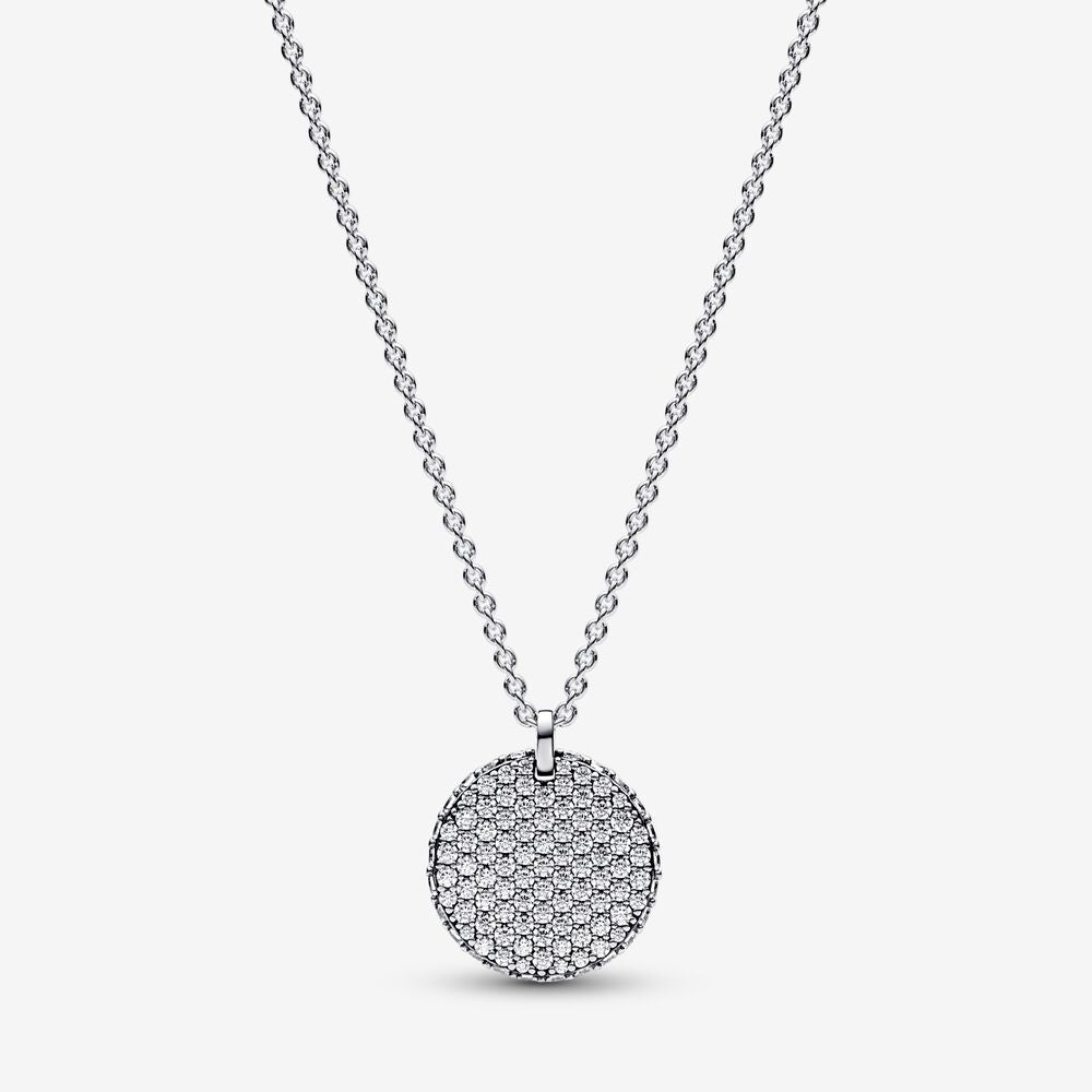 Deixe o seu brilho falar com o nosso Colar Atemporal Circulo Brilhante. Com um disco inspirado em medalhão coberto com 89 zircônias cúbicas claras, este colar de prata esterlina é perfeito para todos aqueles que gostam de brilhar. Todas as pedras estão voltadas para fora e até mesmo a borda do medalhão é incrustada para um efeito tridimensional. Deixe seu amor pelo brilho brilhar com esta peça única ou presenteie-a para a pessoa que ilumina sua vida.