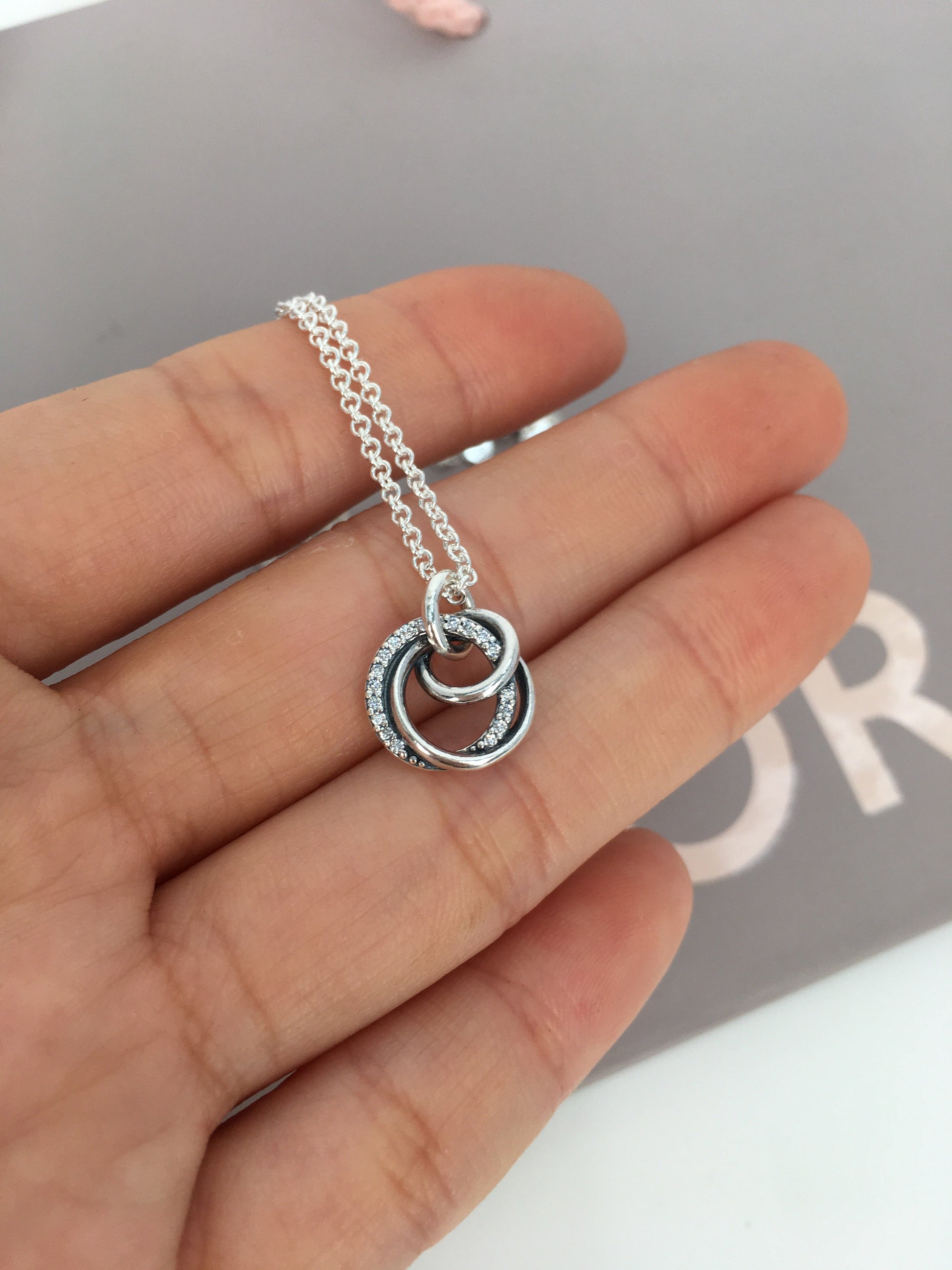 Símbolo de laços eternos, o Colar com Pingente Família Sempre Cercado apresenta três círculos entrelaçados no pingente – dois em prata 925 polida e um pavé de zircônias cúbicas cintilantes. O fechamento apresenta um pequeno disco em forma de coração com o monograma O em um lado. O comprimento da corrente é ajustável, tornando este um toque final versátil para sua roupa.