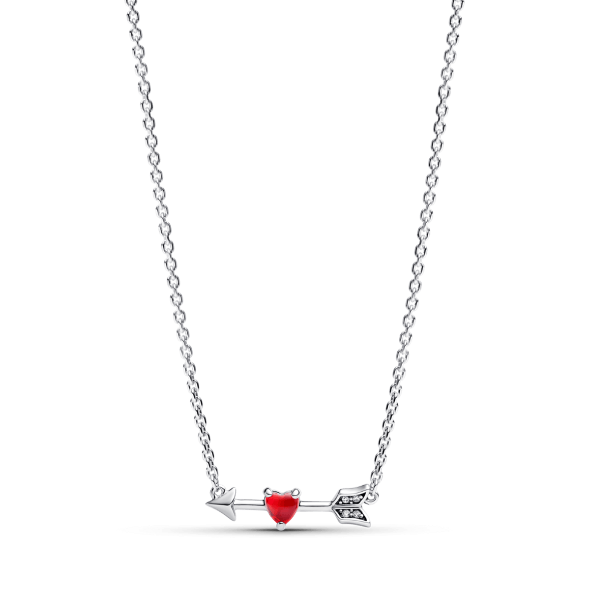 Represente o Anjo Cupido com o Colar Coração e Flecha. Com um coração de vidro murano vermelho no centro de uma flecha, este colar brilha com quatro zircônias transparentes ao longo da trança da flecha, formando um símbolo universal de amor. Use-o sozinho ou sobreponha-o com outras correntes para um conjunto personalizado. Com um comprimento ajustável de 40, 45 ou 50 cm, é perfeito para qualquer decote.