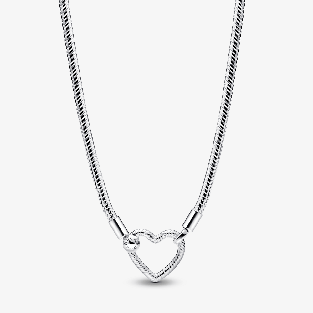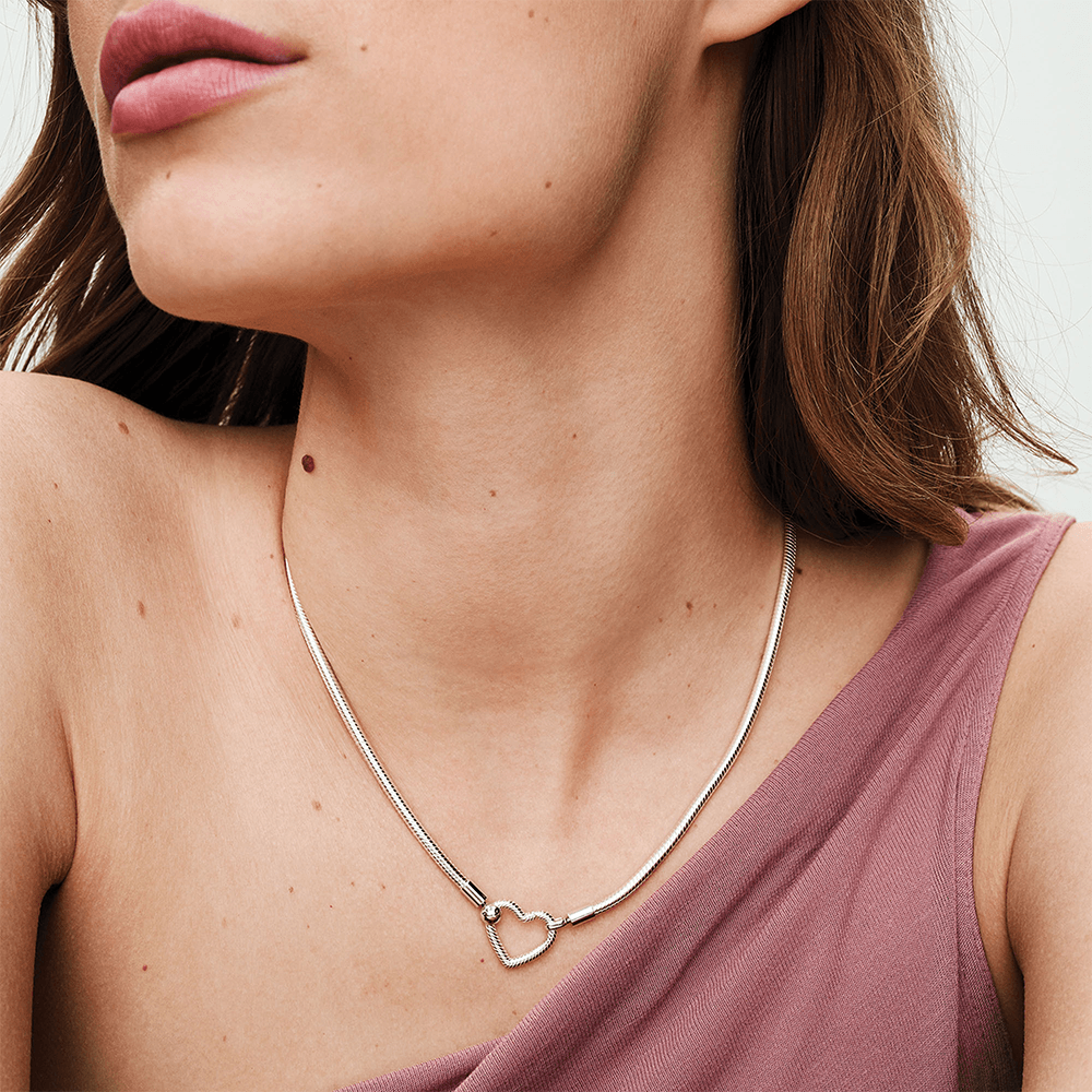 Colar De Prata Corrente Em Trama E Fecho De Coracao