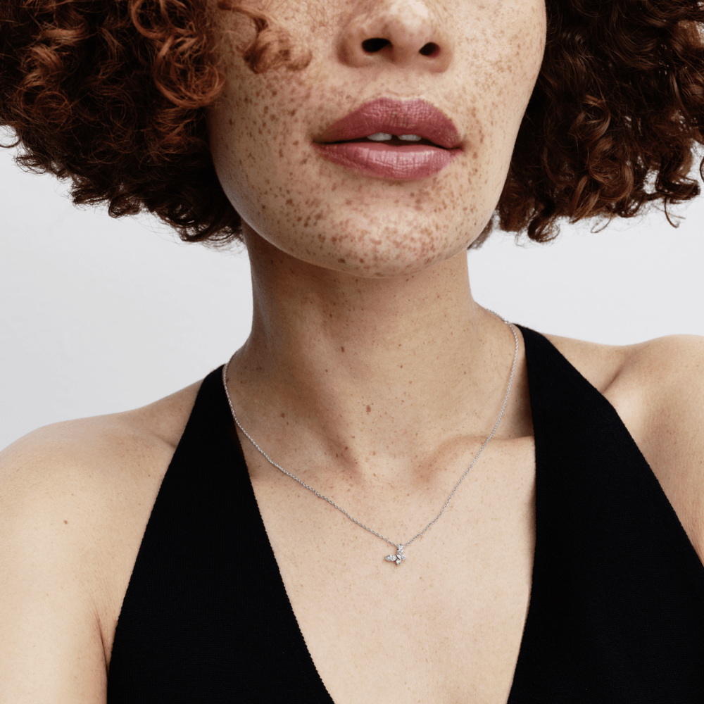 O Colar com Pingente de Borboleta Brilhante da Pandora simboliza transformação e resiliência com um toque de elegância natural. Feito em prata de lei e finalizado à mão, o pingente delicado em formato de borboleta é cravejado com zircônias cintilantes, pendendo graciosamente de uma das asas. O design leve e sofisticado desliza sutilmente pela corrente, capturando a luz a cada movimento — um tributo à liberdade, à mudança e à beleza de novos começos.