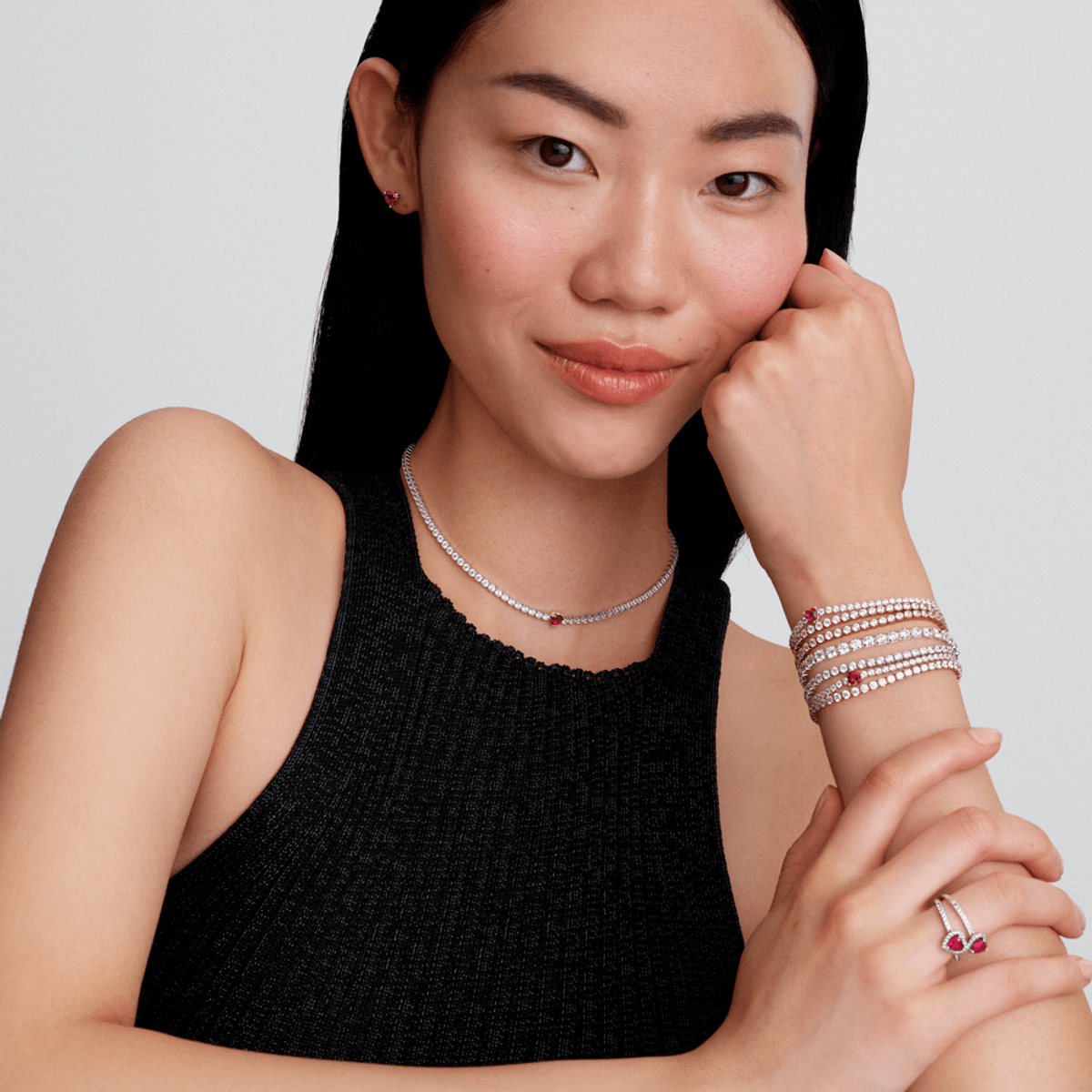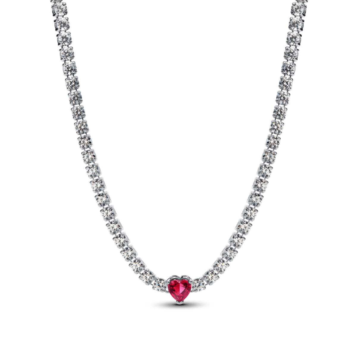 Colar De Prata Riviera Pingente Coracao Vermelho