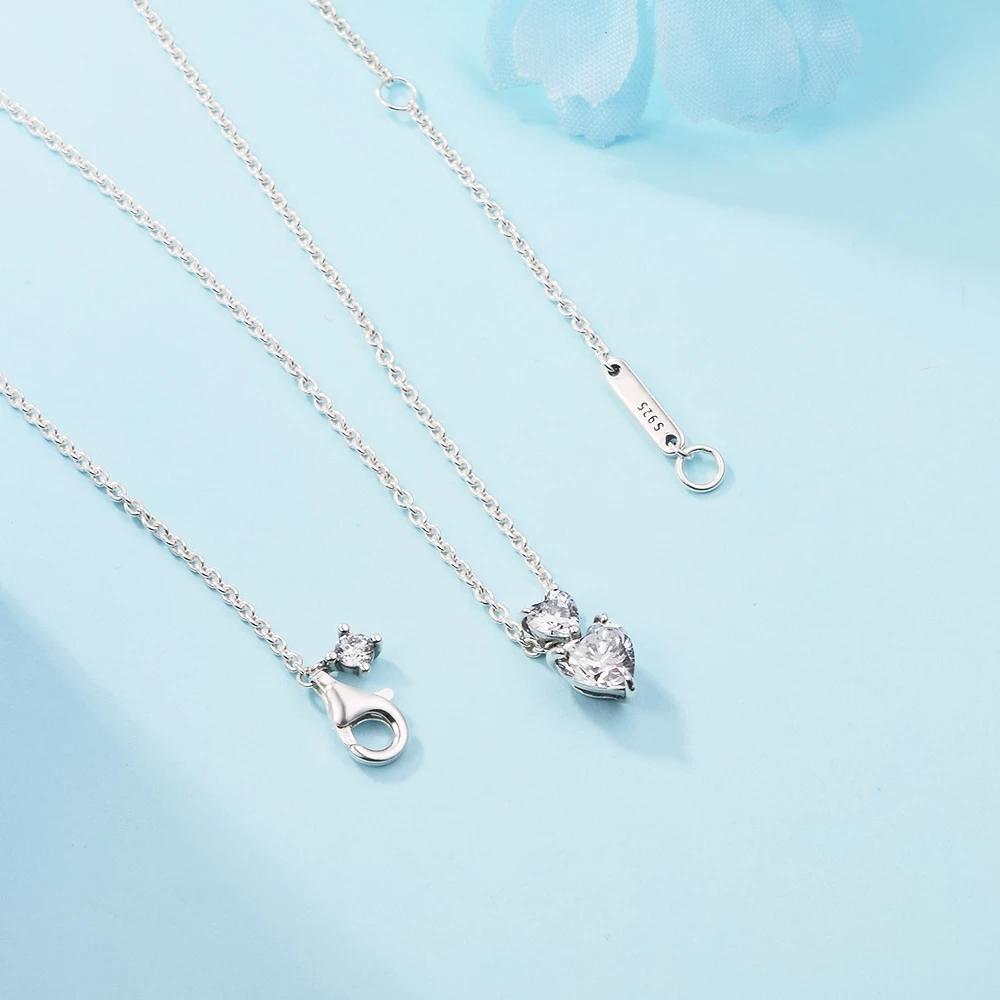 Dois corações batem em uníssono neste design atemporal. Este colar cintilante apresenta duas pedras em forma de coração de tamanhos diferentes, a menor das quais se conecta ao pingente do colar. Uma pequena pedra redonda de zircônia cúbica brilha ao lado do fecho lagosta. O comprimento da corrente é ajustável e torna essa joia ainda mais versátil e adequada para qualquer look.