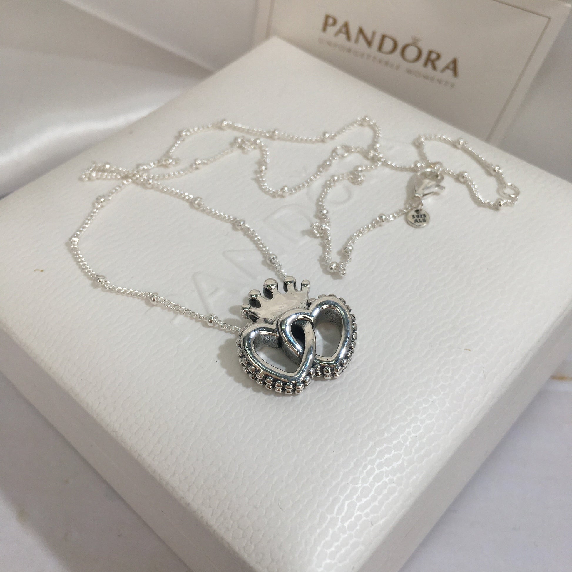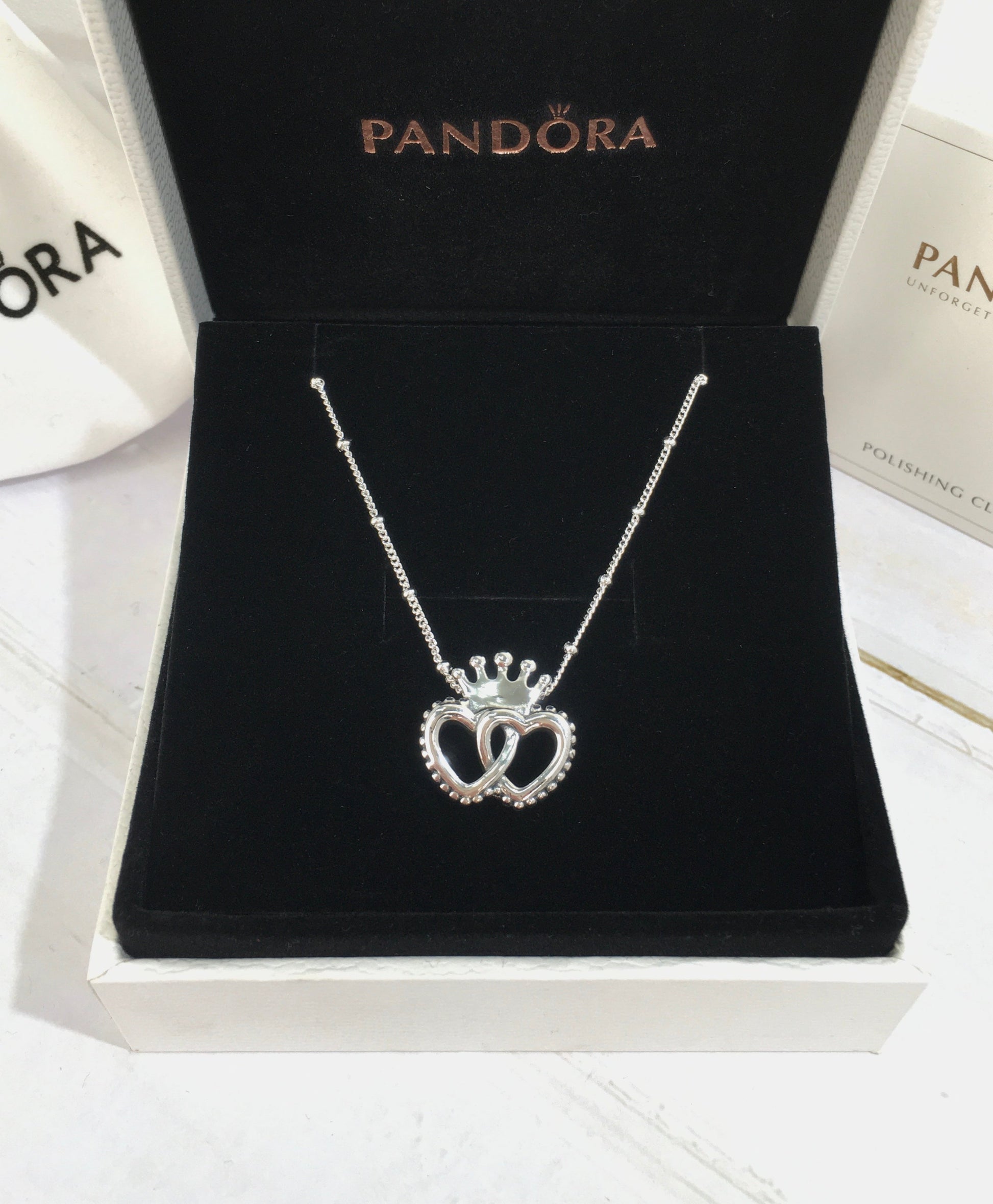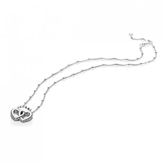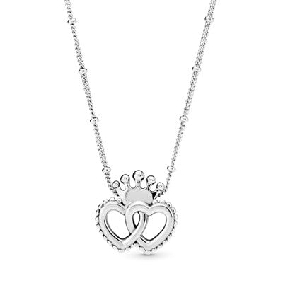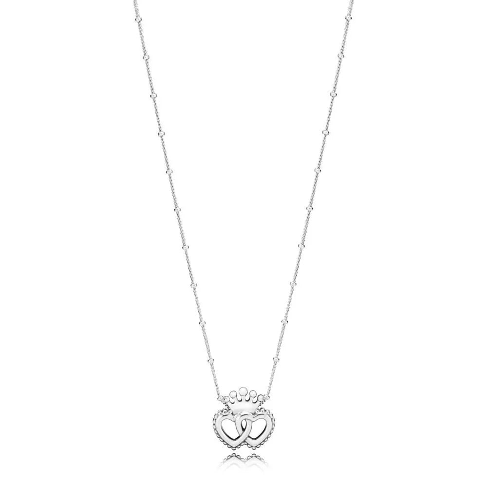 Complete seu visual com uma coroa. Este colar em prata 925 cria um ar de conto de fadas moderno com corações interligados e sua coroa gloriosa. Use-o em três comprimentos diferentes para se adaptar ao seu visual.