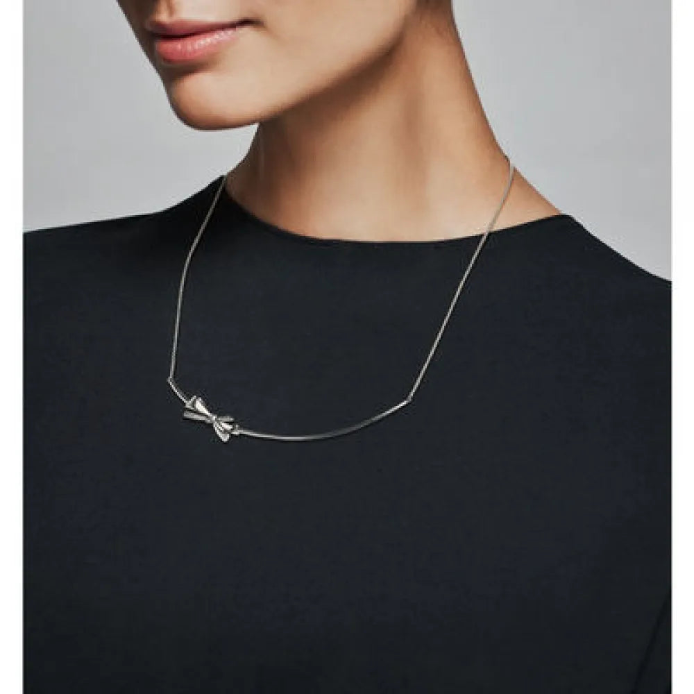 Em um aceno ao glamour retrô, este colar de prata 925 funde uma corrente delicada com um aro tubular e é coberto com um detalhe de laço chique com detalhes em pedra.